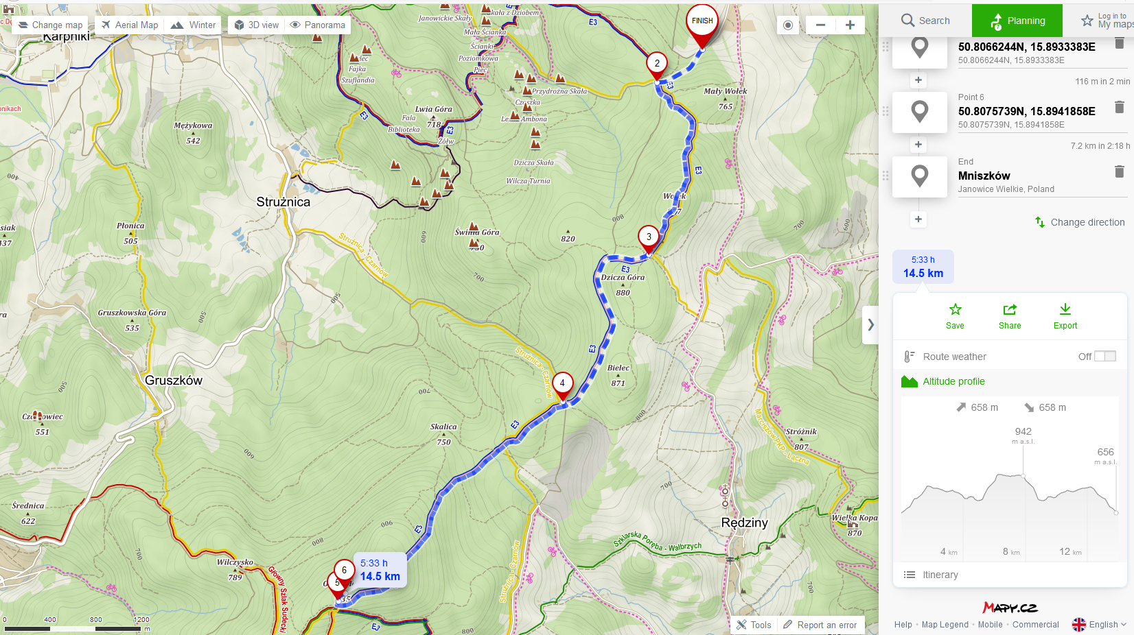 • cała trasa na Skalnik i Małą Ostrą w te i we wte to ok 15 km