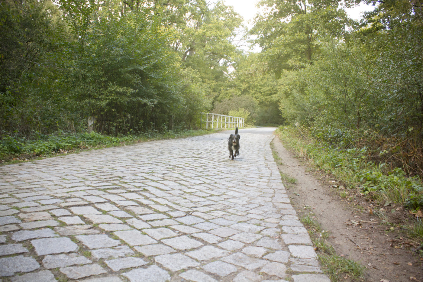 Poza momentami kiedy musieliśmy ustąpić przejeżdżającym samochodom idzie się bardzo przyjemnie. Przechodzimy przez teren Specjalnego Obszaru Ochrony Siedlisk Natura 2000 Grądy w Dolinie Odry, więc uwaga na mieszkające tam zwierza, co by nie zakłócać im spokoju. Mijamy kilka cieków i bajorek i to również nie miejsce na spławienie psa – na to jest miejsce za wieżą, przy brzegu Odry, ale poza tym pamiętajmy o gatunkach chronionych 🙂