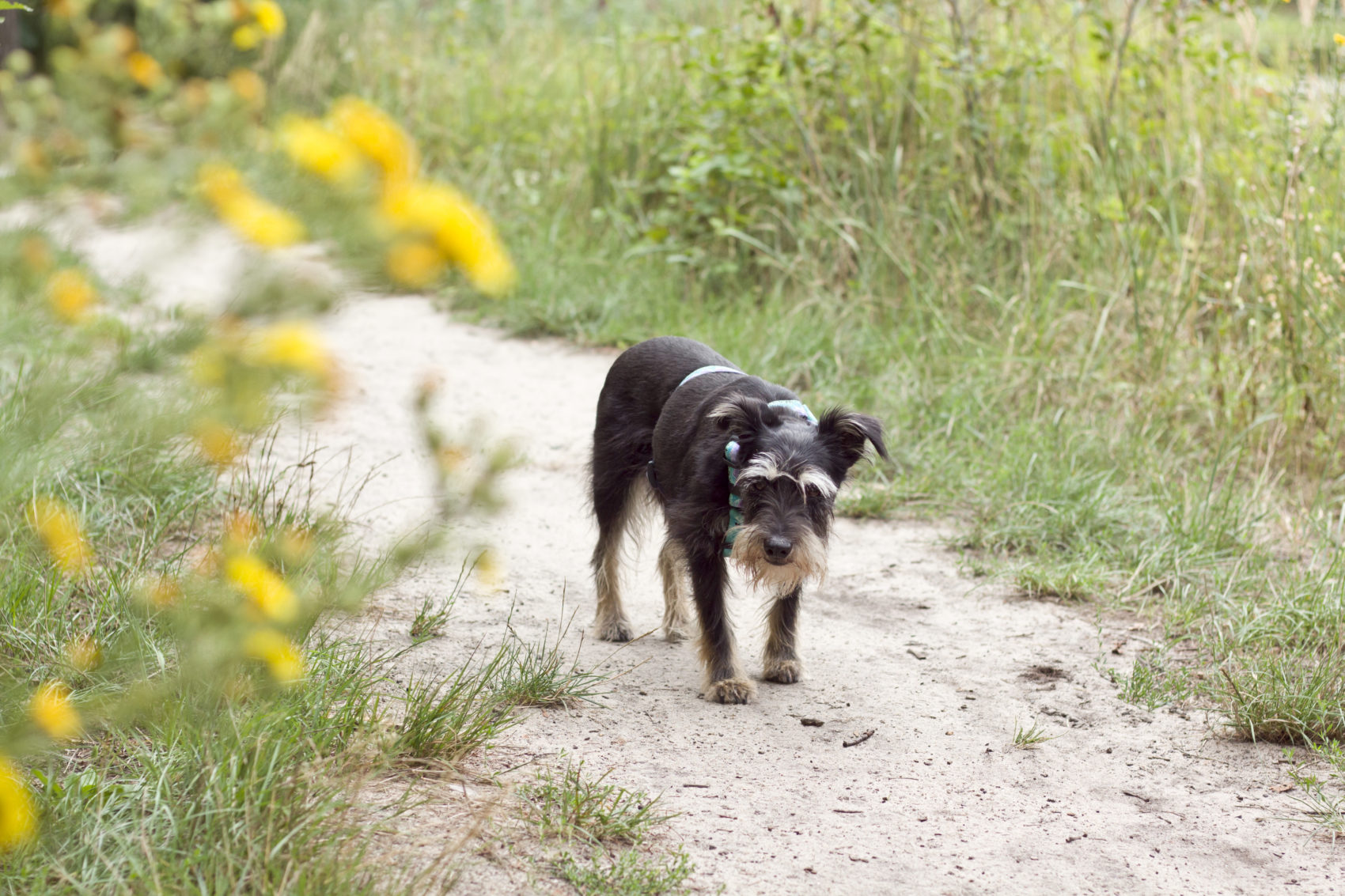 Jeśli poza moczeniem odnóży macie ochotę na klasyczny spacer, okolica nie zawiedzie. My ze względu na czas wybrałyśmy „na dobicie” przejcie się fragmentem szlaku rowerowego. To szeroka, dobrze utrzymana droga leśna, w sam raz na dreptanie, trzeba tylko pamiętać że to oficjalny szlak rowerowy , będą więc rowerzyści a my musimy się i psy ogarniać, żeby nikt nikomu nie przeszkadzał 🙂