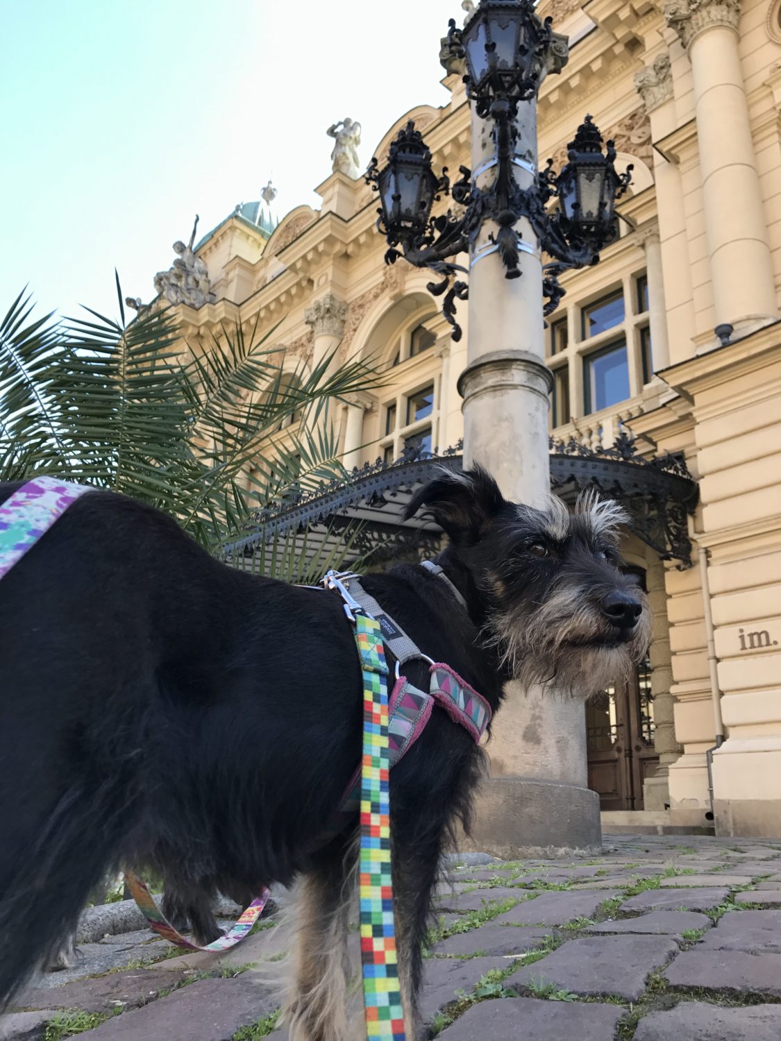 Wnioski jakie mi się nasunęły już podczas dzieńwcześniejszego wieczornego spaceru: super, że w samym ścisłym centrum, wokół Starego Miasta jest teren zielony, gdzie można pospacerować z psem. Wiadomo, o spuszczeniu futra ze smyczy nie ma mowy, ale jest to potrzebne urozmaicenie łażenia po betonie, zwłaszcza przy takich temperaturach jakie nas złapały. Niby 23-24 stopnie, ale przy gruncie, więc na poziomie suczydeł sporo więcej.