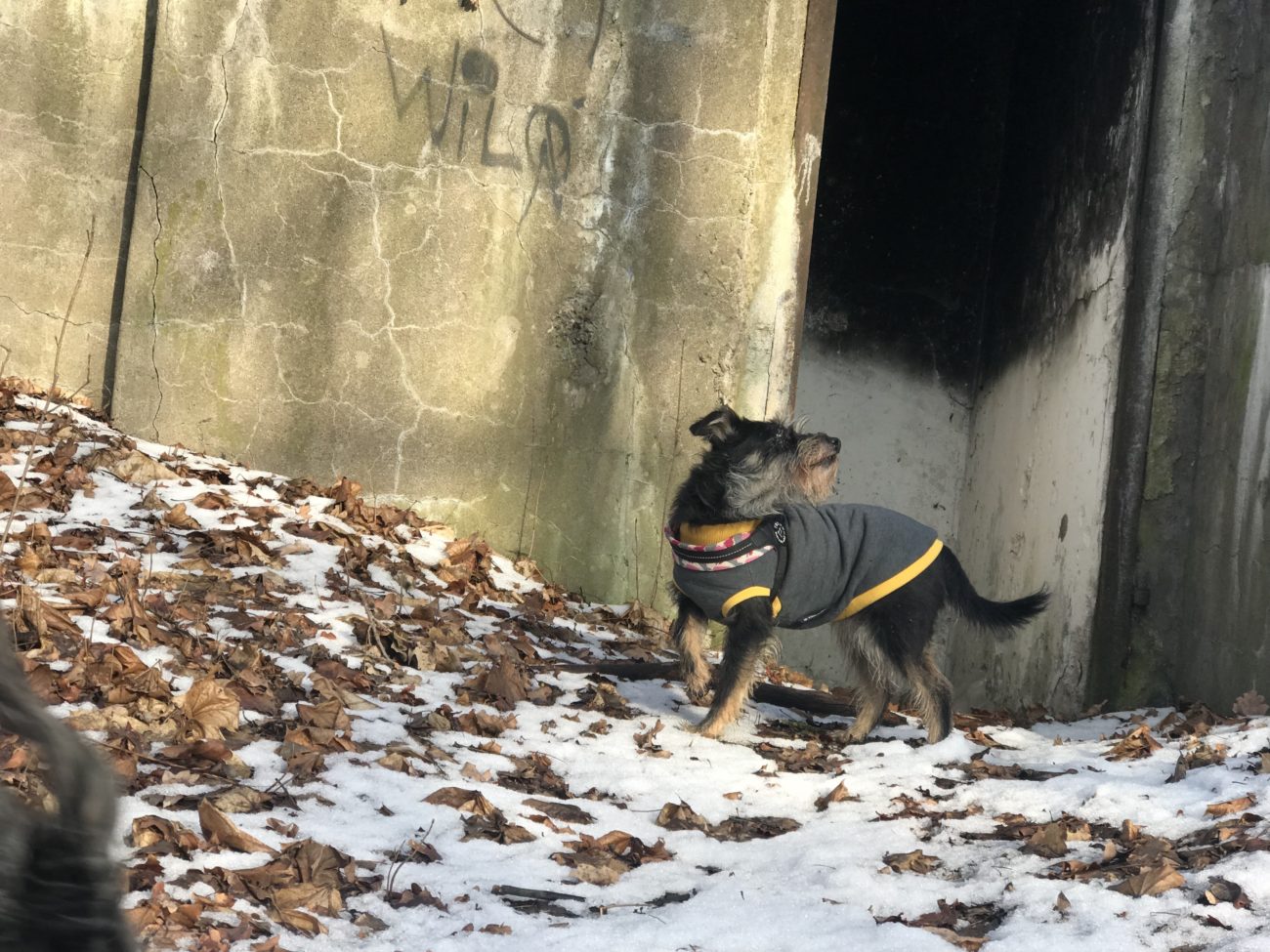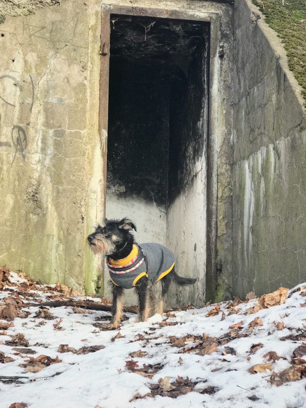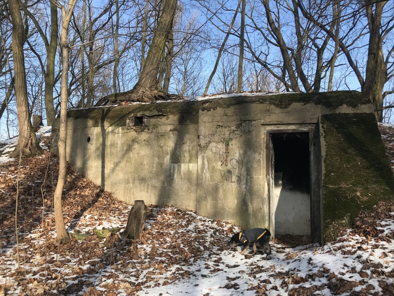 Według informacji jakie udało mi się znaleźć schron składa się ze schronu piechoty, dwóch schronów-wartowni oraz linii stanowisk strzeleckich. Cały układ można obejść, można poszperać nad betonowymi płytami które wg tego co udało mi się wyczytać miały chronić strzelców. Całość na mnie robi ogromne wrażenie. Ponieważ byłam sama, nie licząc suczydeł nie odważyłam się wejść do środka, dlatego podrzucam Wam LINK do strony z dodatkowymi informacjami i fotkami z wnętrza 🙂 O tym że można by się zapuścić ciągle myślę, zwłaszcza że wszystko wskazuje, że w jego wnętrzu kryje się kesz , ach ten geocaching 😀