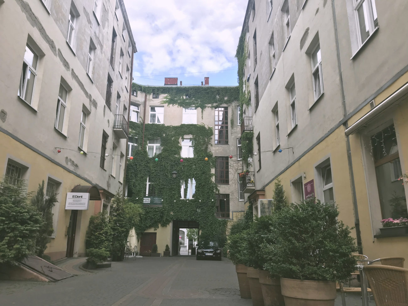 Pierwsze miejsce z zielonością jakie Wam podsyłam to miejsce gdzie znajdziecie kilka fajnych knajpek, napijecie się dobrej kawki i nie jest to OFF 🙂 Ponieważ dla całego Pufostada spożywcza strona egzystencji stanowi priorytet, zaczynamy od Piotrkowska 217. Dla mnie to taki OFF tylko bardziej kameralny, spokojniejszy, bez dzikich tłumów czyli z tym wszystkim co lubię. Przy pierwszej wizycie w Łodzi przeżyłam OFFowy zachwyt – każda knajpka klimatyczna, indywidualna, może hipsterska, ale chyba jestem kryptohipsterem, więc git. Niestety, taki zachwyt przeżywam nie tylko ja w związku z czym teraz, przy dobrej pogodzie, idąc z sukami na poszukiwanie kawki omijam to miejsce szerokim łukiem. Fajno fajno, robi wrażenie, ale jednak wolę mniejsze stężenie ludzia na metr kwadratowy.
