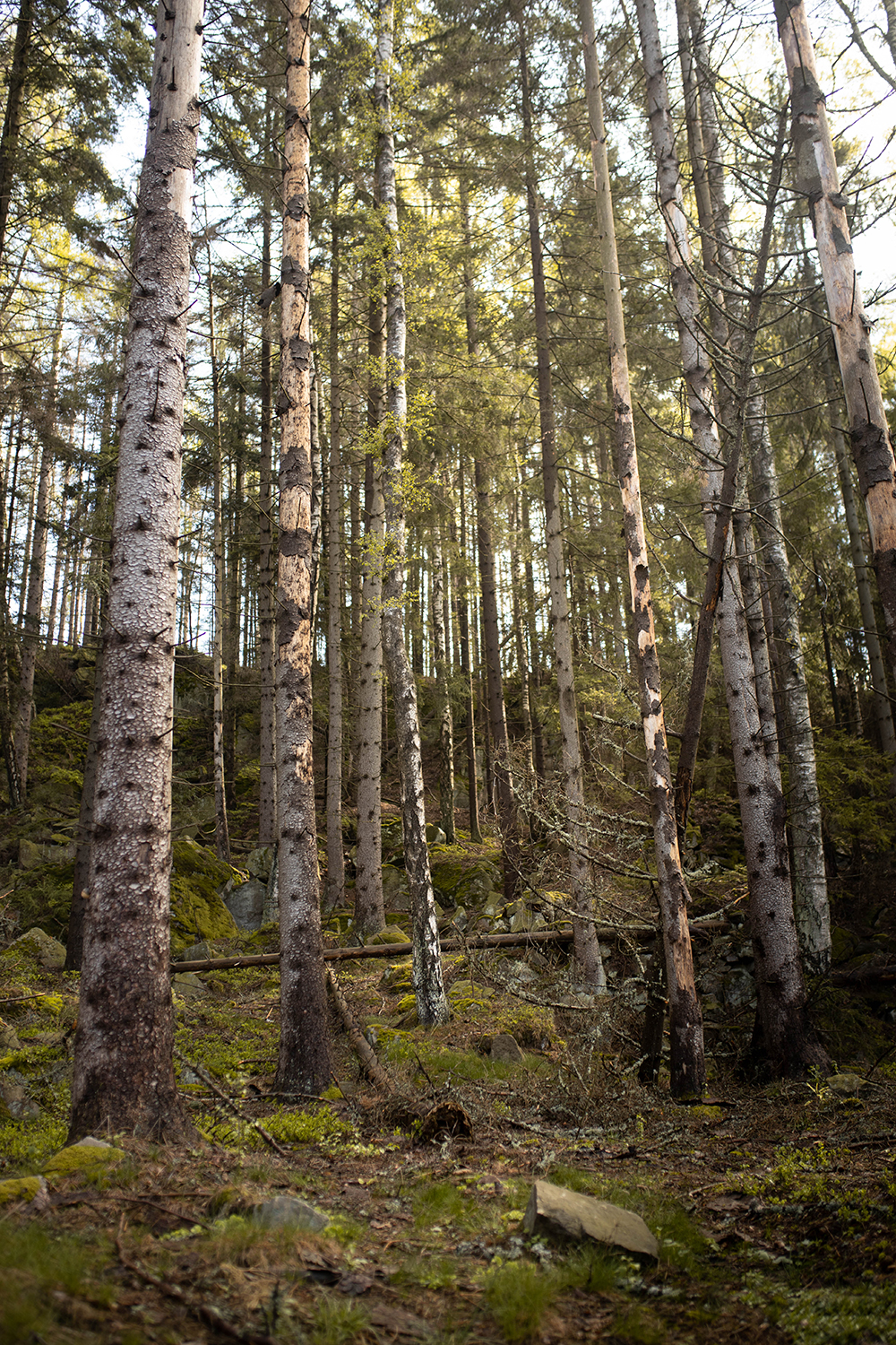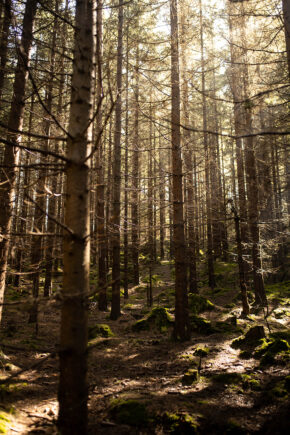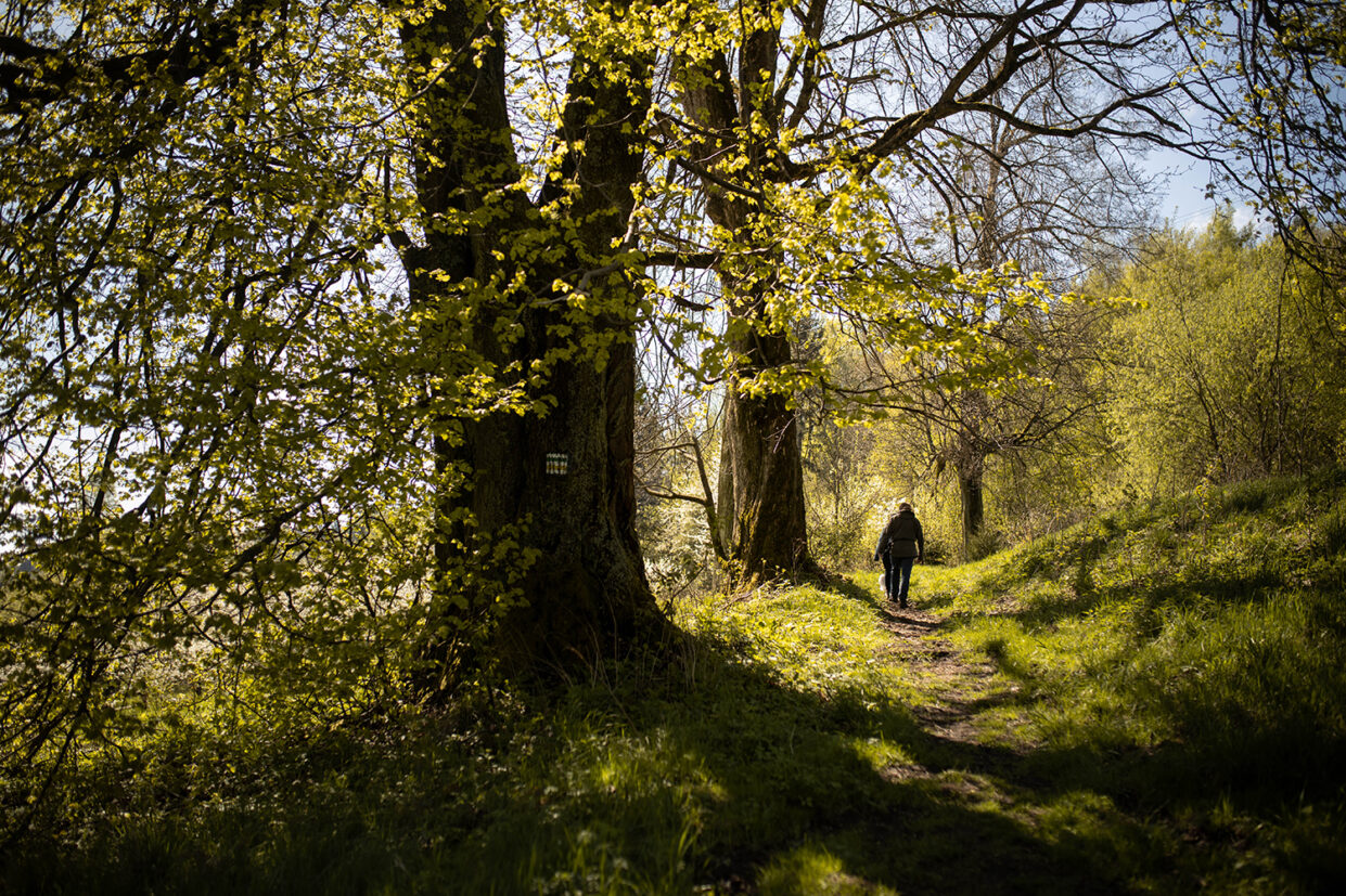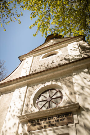 Trasę do Kaplicy świętej Anny można podzielić na 2 części. Z parkingu do Batorowa i przez Batorów do kaplicy. Pierwsza część – leśna, ma fragmenty zejść, ale nie aż tak ostrych, żeby idąc z plecakiem z dzieckiem bać się. Przynajmniej na mój (trochę wyćwiczony) gust 🙂