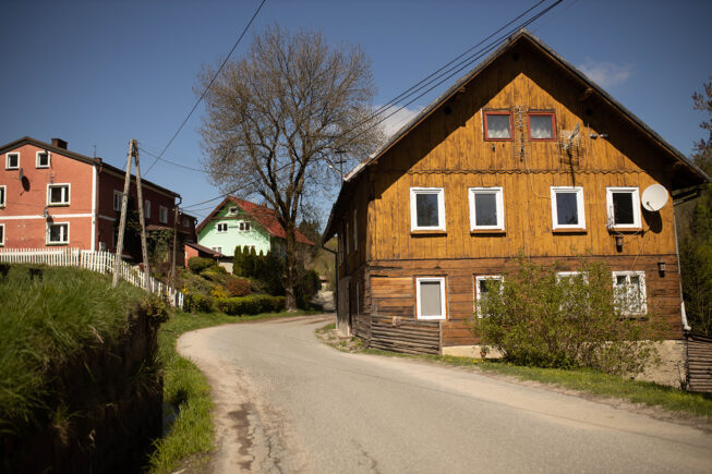 Część druga to przejście przez Batorów. Nie przepadam za takimi odcinkami. Asfalt, brak chodnika i wizja psów wylatujących na nas z otwartych bram. Na szczęście udało nam się bez takich przygód a droga jest na tyle szeroka, że nawet przy mijających nas autach, jeszcze przed wskoczeniem na chodnik, dało się przesmyknąć .