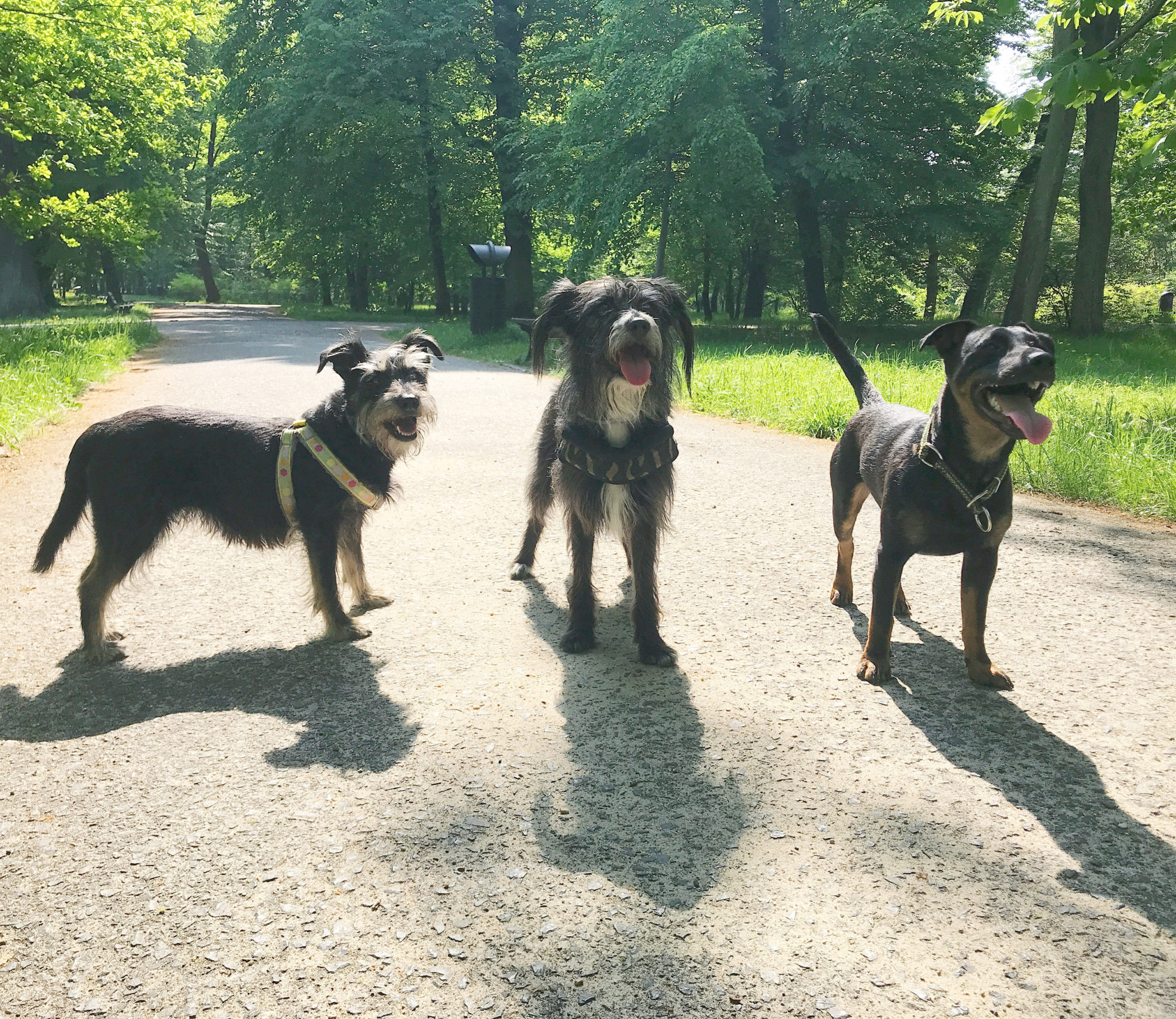 Skoro był spacer stricte miejski, z atrakcjami tramwajowymi, rynkowymi i masowo-ludzkimi, nadszedł czas na coś trochę bardziej dzikiego. Ale żeby zaznać trochę wolności, chociaż Puf mówi że jej to tito, byle by ciastki dawali 😉 , nie trzeba wcale wyjeżdżać za miasto! Jak mantrę powtarzam, że Wro ma cudowne tereny spacerowe wzdłuż rzeki. Wały nad Odrą ciągną się kilometrami, idąc po nich możemy przejść niezły kawał miasta, wskoczyć w jednym miejscu, wyjść w drugim omijając ruch uliczny, tłok i skwar – bo przecież co innego lepiej ochłodzi jeśli nie wodowanie w rzece 🙂 Tym razem suki miały młode, samcze towarzystwo Johnnego, który zamieszkał w domu tymczasowym, ale coś mi się wydaje, że już znalazł sobie lokum na stałe 😉
