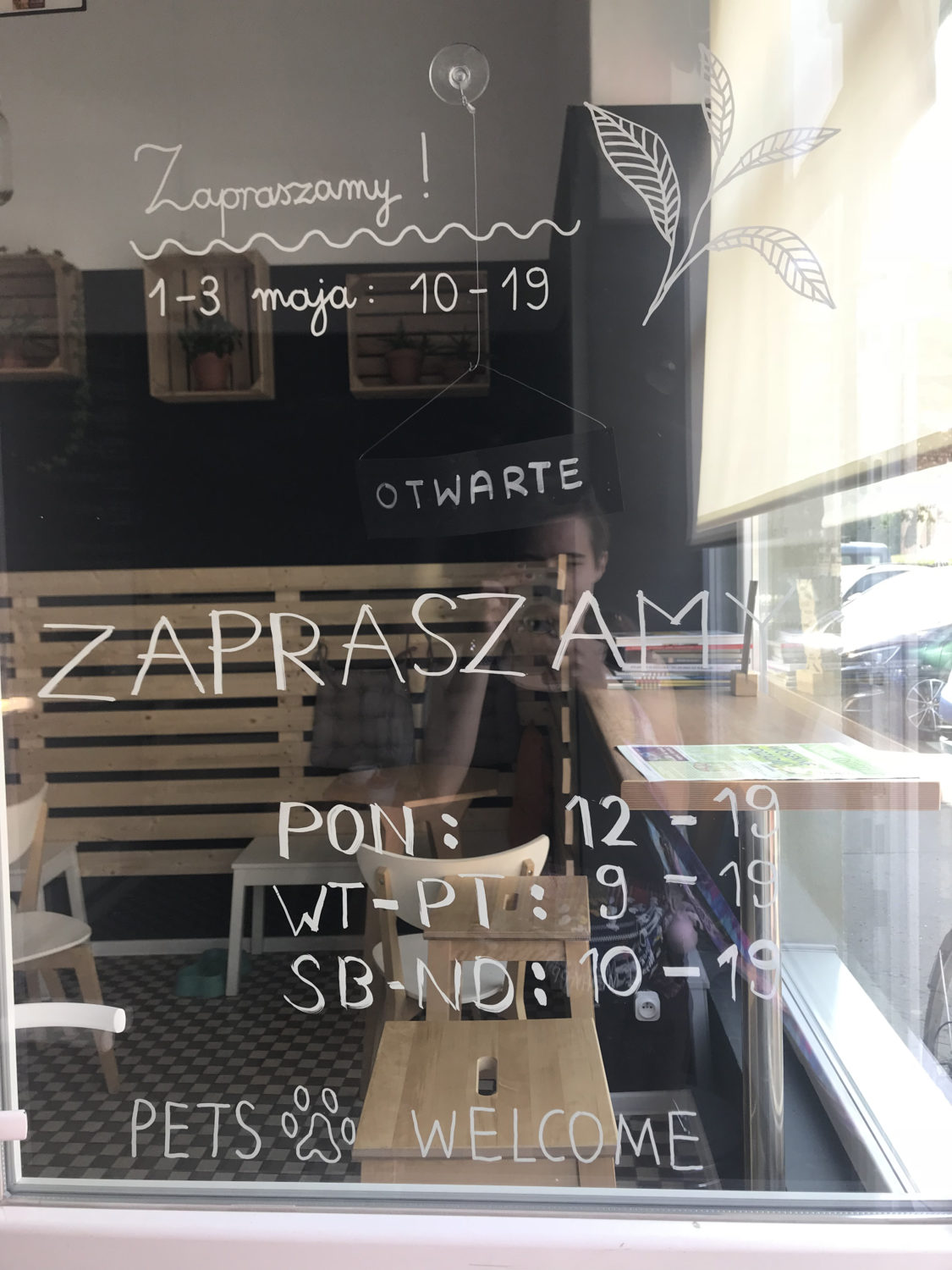 Tylko kilka stoliczków, ale z urokiem. No i kto powiedział, że nie można czegoś wziąć na wynos i kontynuować spaceru?
