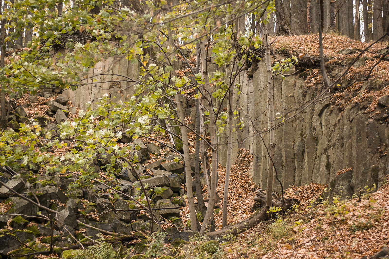 Słupy Bazaltowe, bo o nich tu mowa, można zobaczyć w kilku punktach w tej okolicy. Ale to właśnie na zboczu Mszany są one najlepiej odsłonięte. I mimo, że nie są ultra wysokie to na mnie zrobiły wrażenie