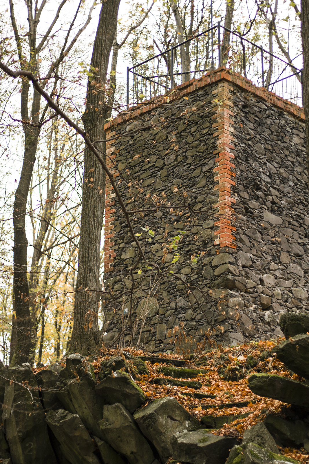 Wieża widokowa została zbudowana z cegły i kamienia. 6 metrowa konstrukcja, dostępna dla zwiedzających cały rok, aktualnie spełnia funkcję widokową dla koneserów.