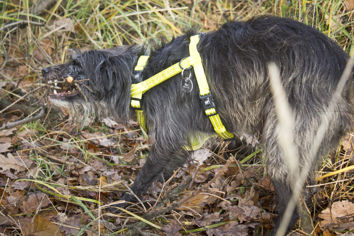 W tym kontekście przyszło nam zabrać się za sprawdzenie zdatności do takiej właśnie aktywności kompletu od Alcott. Za crash testy odpowiedzialna była Bu. Któż lepiej przeora szelki, smycz i obroże niż pies który umiłował latanie po krzakach, błotach i chaszczach. Więc… zaczynamy!