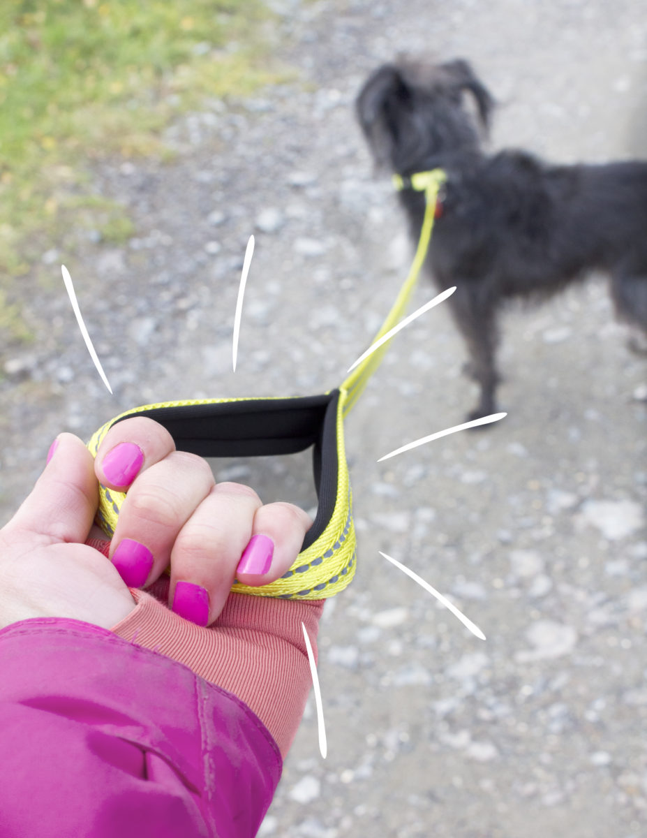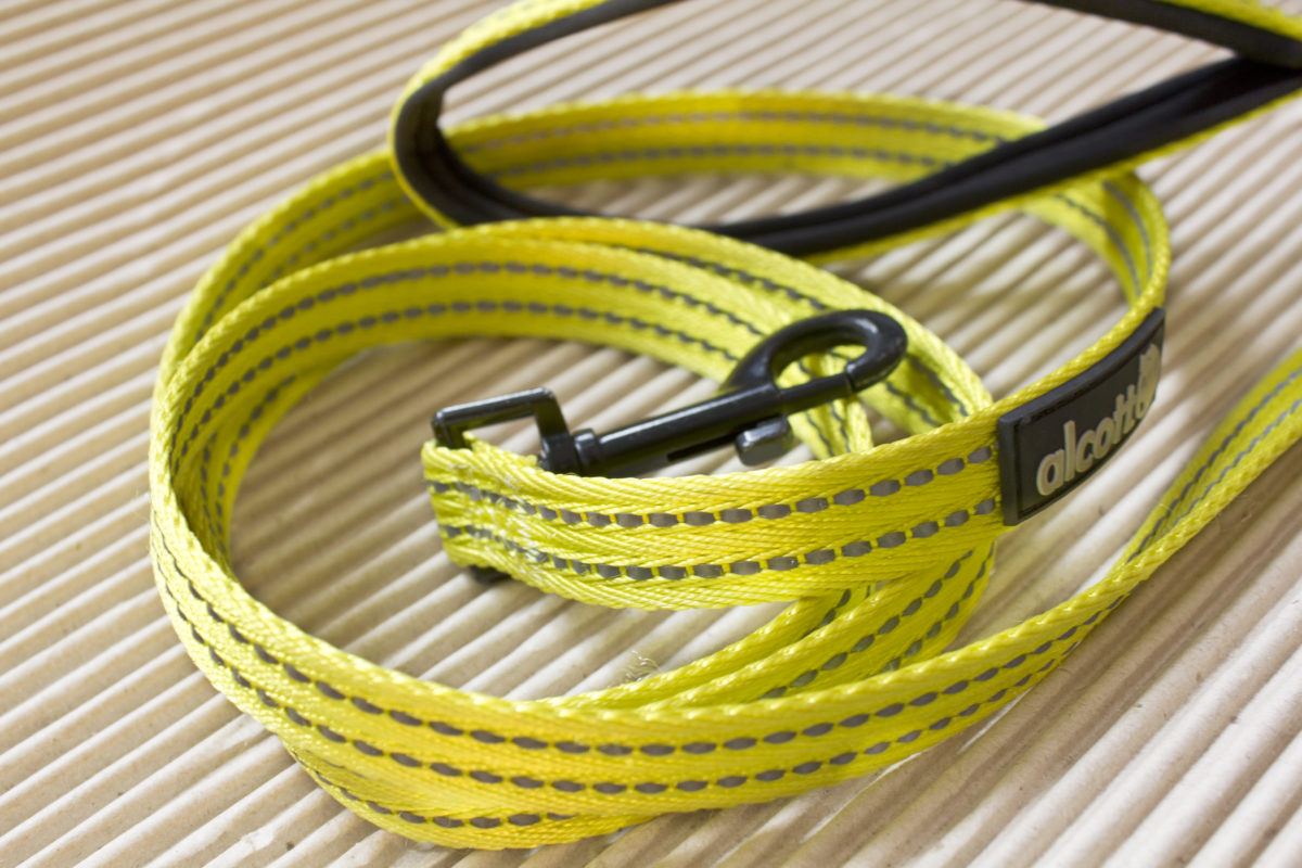 Estetyczne, widać, że to nie jest robota początkującej osoby uczącej się obsługi maszyny do szycia, na pierwsze macanie: wytrzymałe. Rączka smyczy i podbicie obroży obite od wewnątrz pianką neoprenową. Miła w dotyku, nie ślizga się w ręce nawet gdy jest mokra. Bu udało się zmoczyć rączkę smyczy kąpielą w Odrze… w listopadzie… będąc spuszczoną ze smyczy… - Odblaski