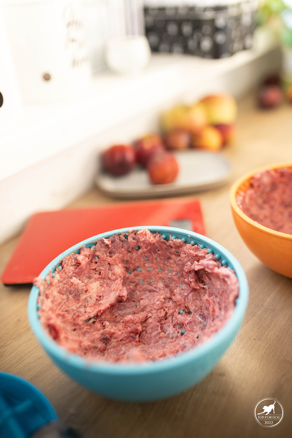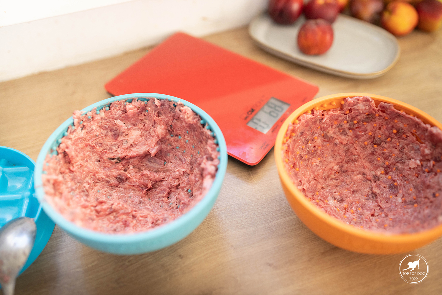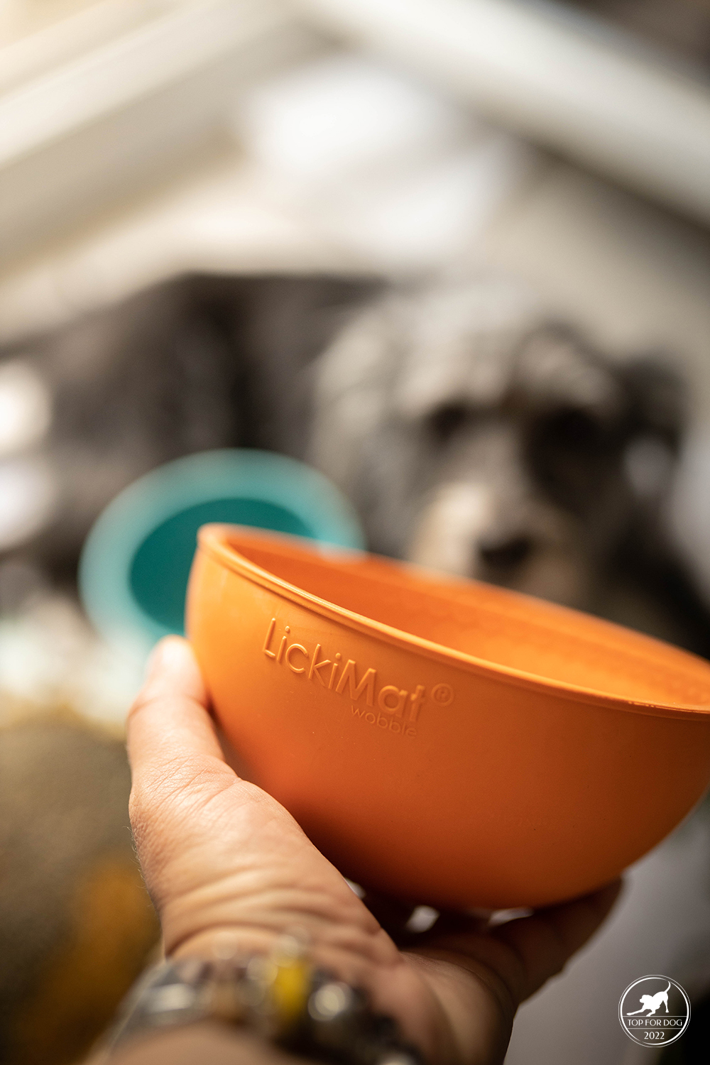Ja korzystam z tych misek do każdego rodzaju mokrego jedzenia. Na co dzień – kiedy podaję Sukom na śniadanie mielone mięso. Dodatkowo kiedy pcham w michy jakieś puszki, tacki czy inne pasty. Wszystko łatwo się rozprowadza, a jedzenie pięknie „utyka” pomiędzy wypustkami, nie tylko utrudniając wydobycie pyszności, ale i stymulując psa. Czucie na języku ma każdy. Myślę, że takie wypusteczki mogą być wręcz przyjemnym masażem dla paszczy 😀
