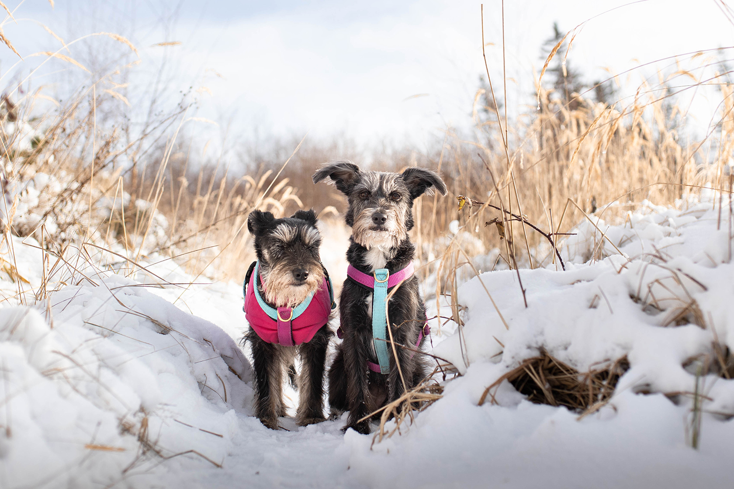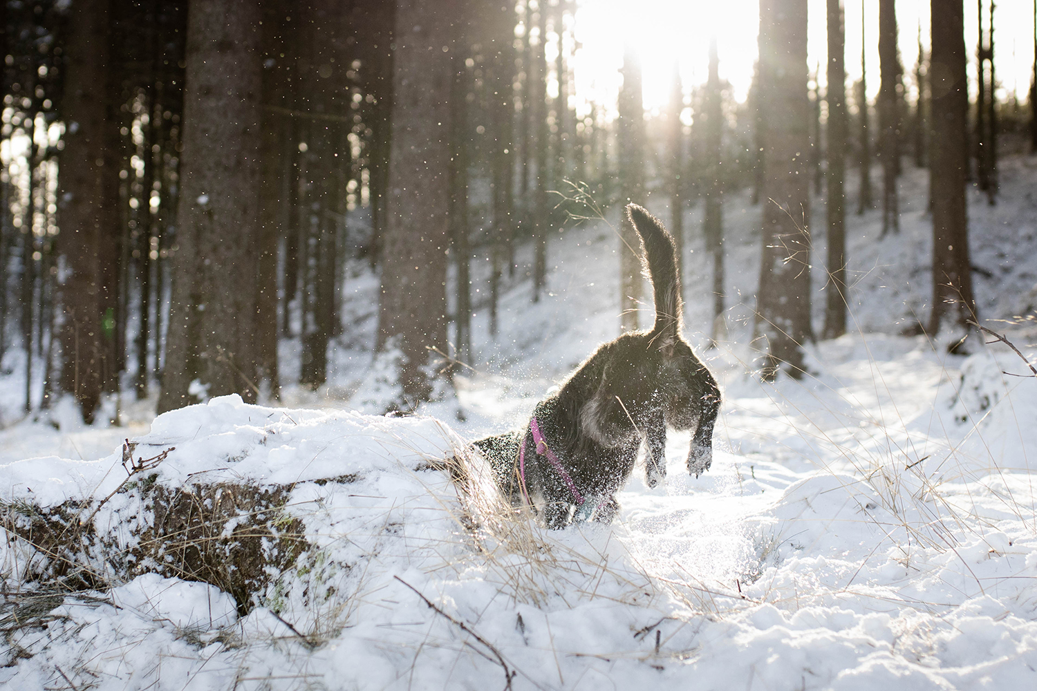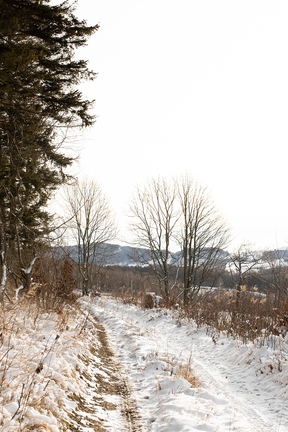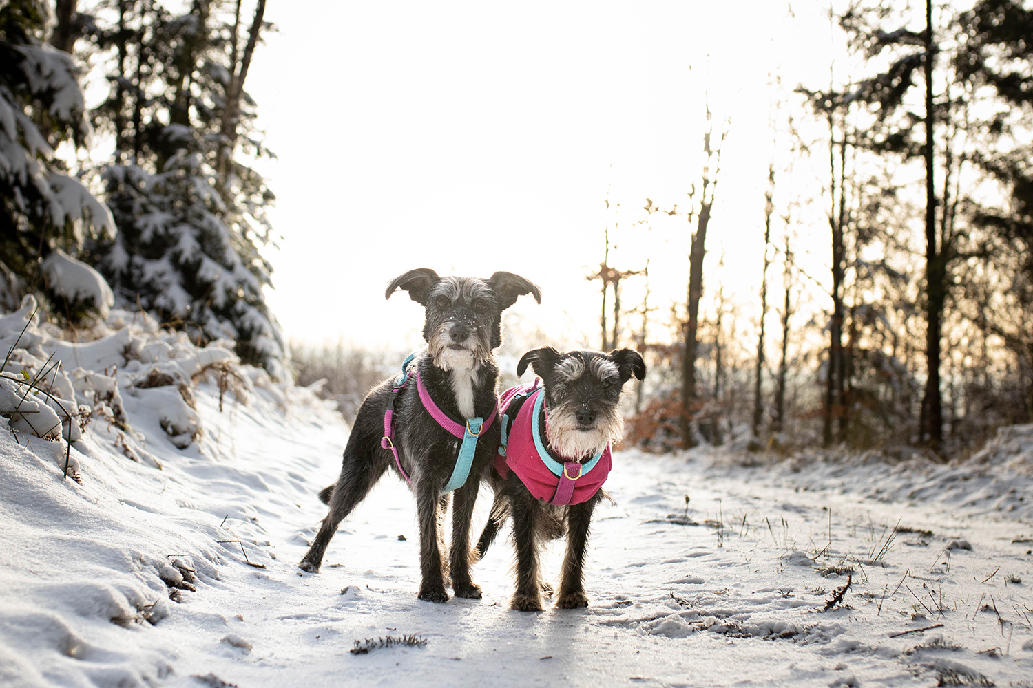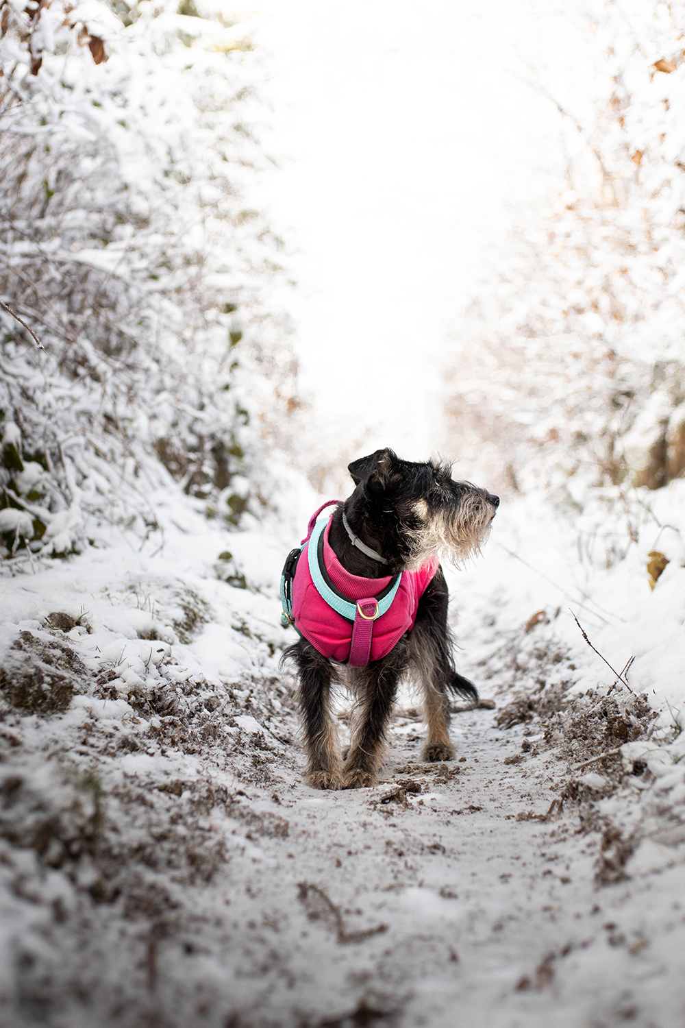 Z miejsca pozostawienia piesowozu wbijamy od razu na szlak żółty. Dobrze oznakowany, po jakimś czasie pojawiają się nawet tabliczki kierujące na punkt widokowy. To taka górska trasa dla każdego pod względem podejść. Bez szaleństw, przynajmniej w większości. Podejscia i zejścia są krótkie i nawet zimą nie odczułam potrzeby zakładania raczków. A jestem śniegowo-ruchowym nieogarnem i nie ryzykowałabym wyłożenia się, idąc sama z psami i do tego z aparatem w ręce