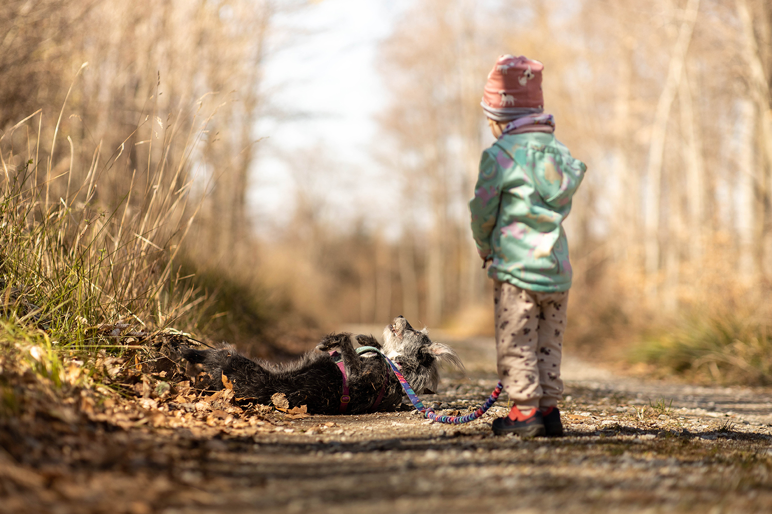 Jedyny minus- ten powrotny fragment będzie odsłonięty i nasłoneczniony. Pamiętajmy o tym, jeśli będziemy tu przechodzić w cieplejszą pogodę. Psie łapki bardzo nie lubią gorącego asfaltu, a cała wyprawa ma być przyjemnością dla wszystkich jej uczestników