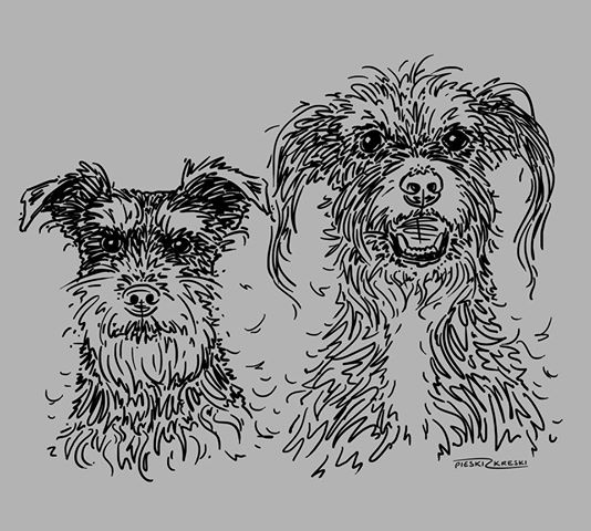 W przypadku Piesek z Kresek jest to grafika. Możecie porozmawiać, dogadać się , poprosić i dostajecie na przykład jak ja- Pufę i Bu jako żywe, w charakterystycznym Kreskowym stylu. Oczywiście możecie prosić o Waszego pieska, nie każdy musi latać z Pufostadem na klacie 🙂