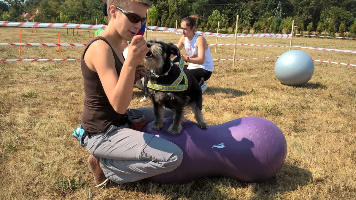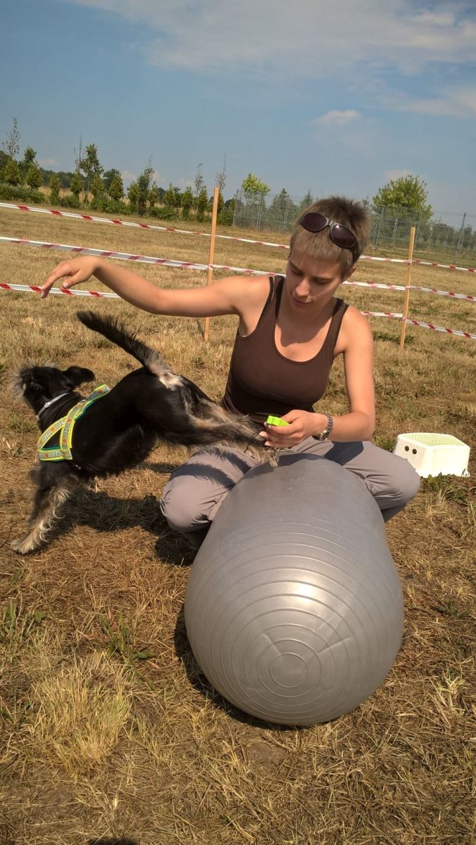 (I były super kule i „fistaszki” z Positive Dog, to już nasze drugie, po Pikniku Psiej Paki, podejście do fitnessu, dobra, zajęć ze świadomości ciała 🙂 I było o wiele lepiej. Pufa jest już bardzo uświadomiona)