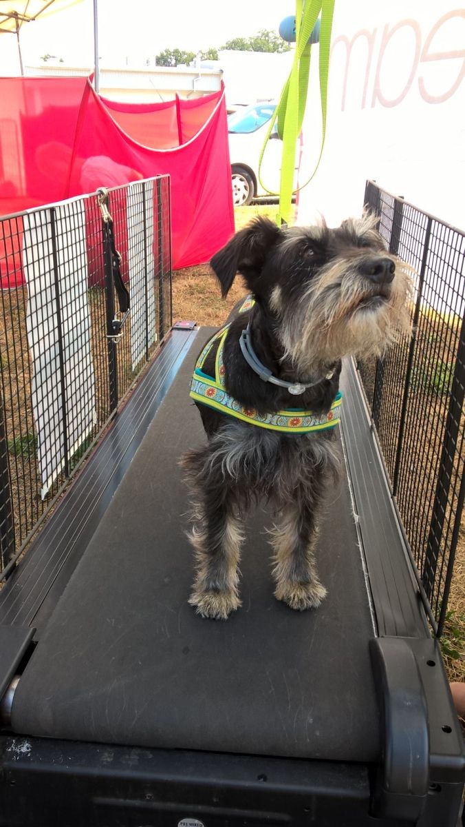 (Udało się też namówić psa na próbne skorzystanie z bieżni – o dziwo nie miała nic przeciwko. Okazało się że VitaVet pamięta Pufę jeszcze sprzed naszej adopcji, ale wtedy nie był to jej ulubiony sposób spędzania czasu)