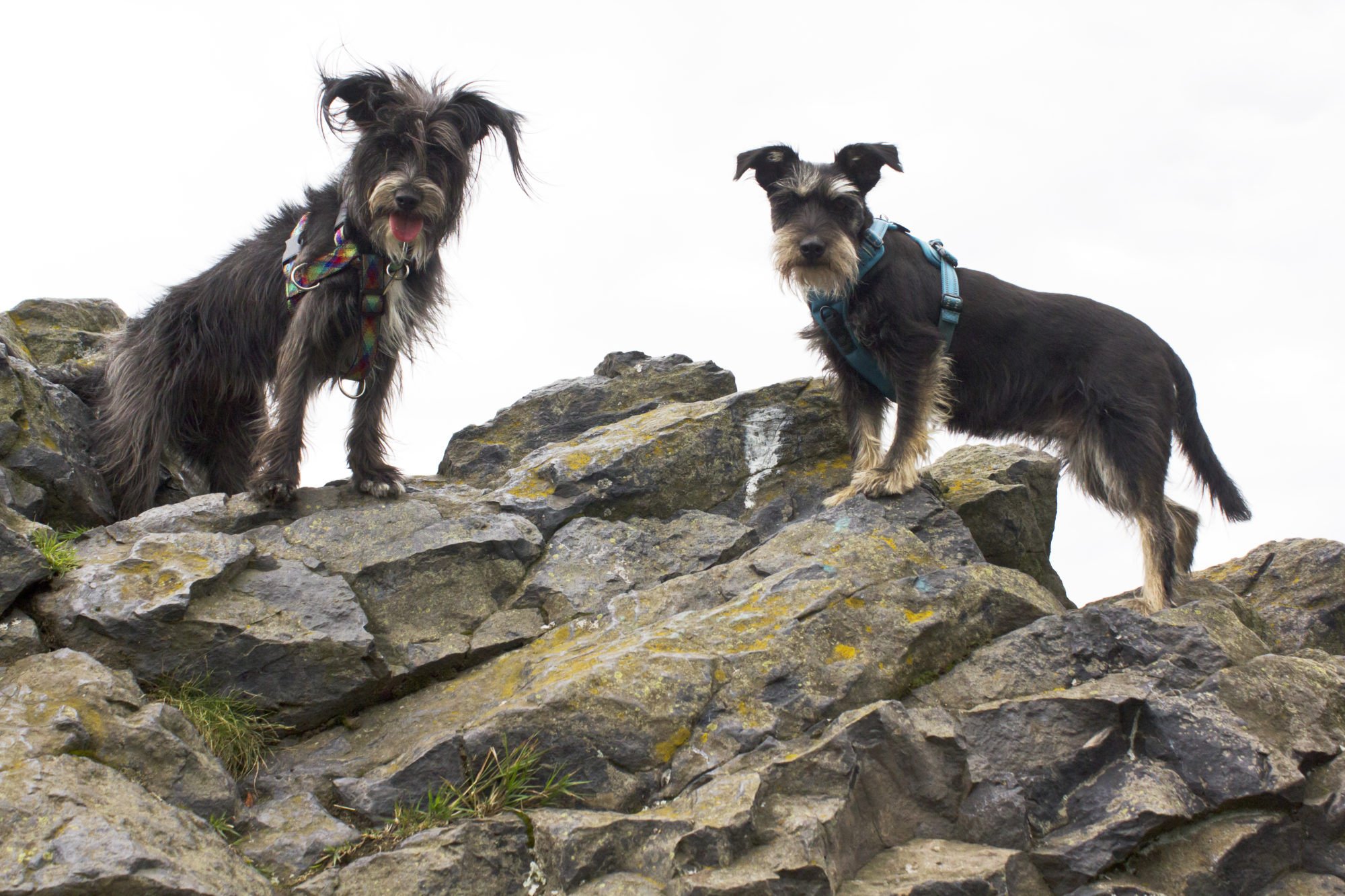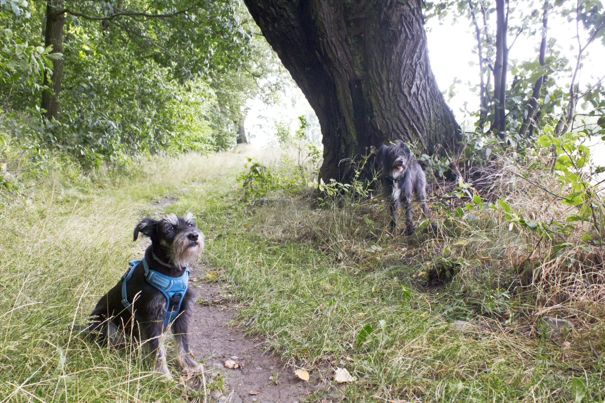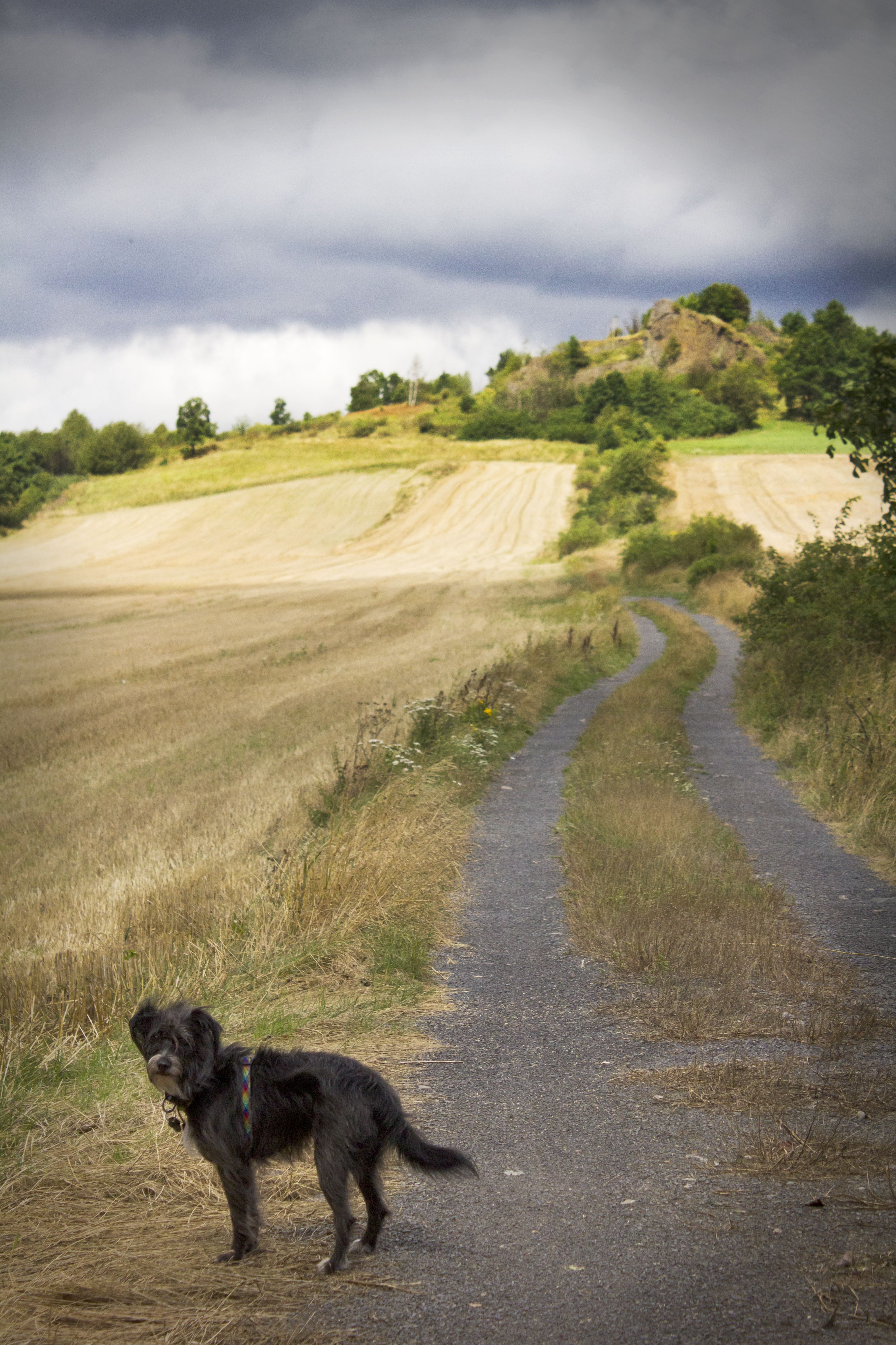 Zaczęliśmy od Czartowskiej Skały, bazaltowej pozostałości po kominie wulkanicznym. Tak, doczytaliśmy przed przyjazdem, bo ja skały rozpoznaję jeszcze gorzej niż drzewa, czyli wiem jak mniej więcej wyglądają te kamulce w pierścionkach, ale już taki sam „dziko żyjący” to dla mnie abstrakcja. Mimo to, pochwalę się – jak już wdrapaliśmy się na Skałę, nie dało się nie zauważyć tych takich pionowych cosiek, które wg wszelkiego tentegowania są właśnie bazaltami 🙂