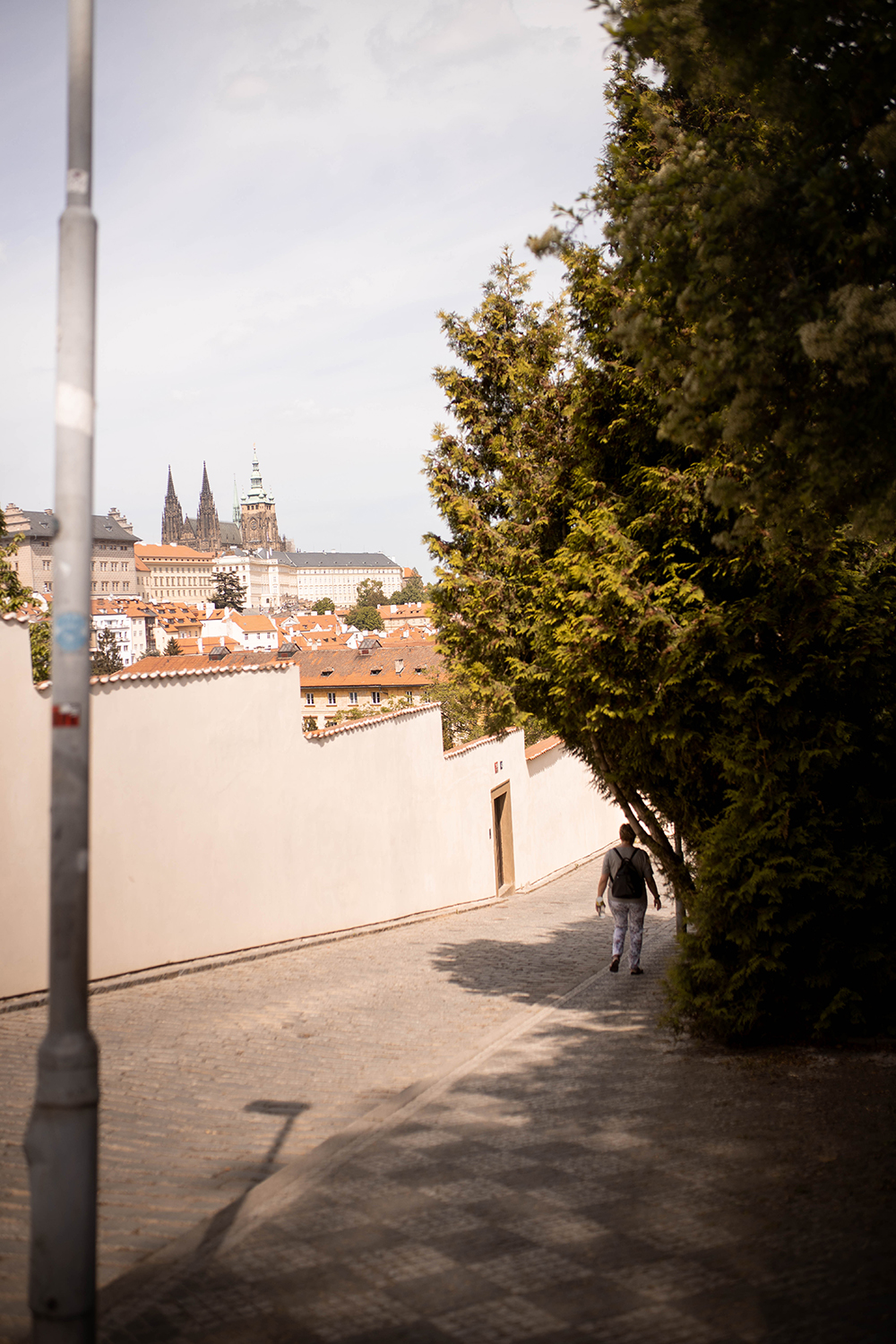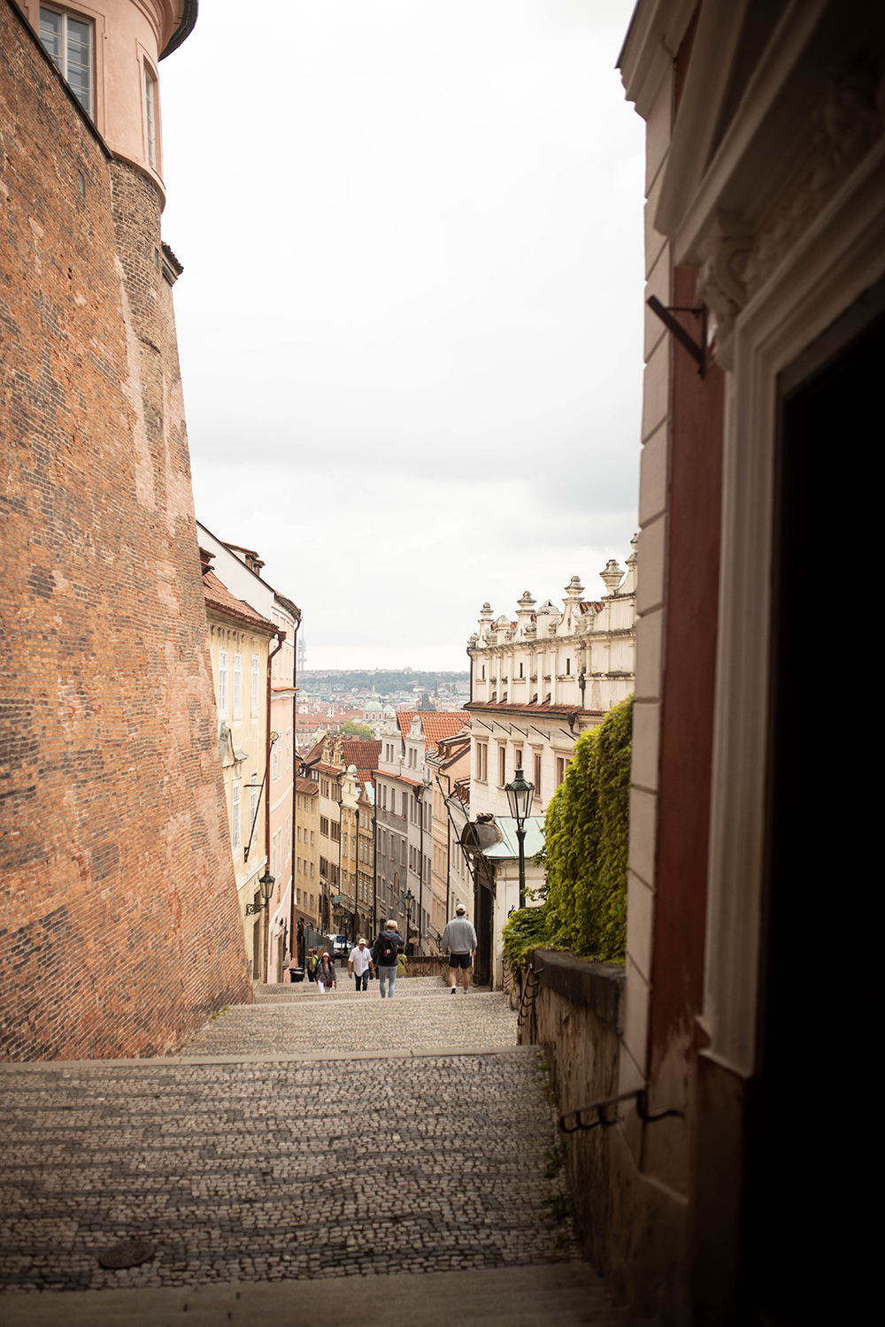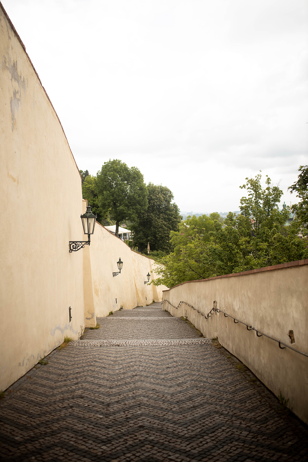 Czyli Wzgórze Zamkowe, to dzielnica przepiękna, choć zatłoczona. My strategicznie rozdzieliłyśmy ją od Petrinu, choć leżą zaraz obok siebie. Zależało nam ze względu na Bu by to miejsce odwiedzić z samego rana. Trafiłyśmy na średnią pogodę, co dodatkowo działało na naszą korzyść, odludniając te okolice. Wybierając się na zwiedzanie Pragi trzeba mieć jedną świadomość – wzgórza i podejścia. Tego się tutaj nie uniknie. Można kombinować i iść na około, można jak my- stawić czoło swoim słabościom i wspinać się po schodach. Kiedyś nie było by to problemem, ale teraz ze względu na skład ekipy- Bu, Matka Moja, ceniąca sobie posiadane zasoby energii i ja, hodująca arbuza, zwaną pieszczotliwie Fasolą. Dream Team kulający się w tempie spacerowym i uważnie planujący każdy etap wypadu 😀