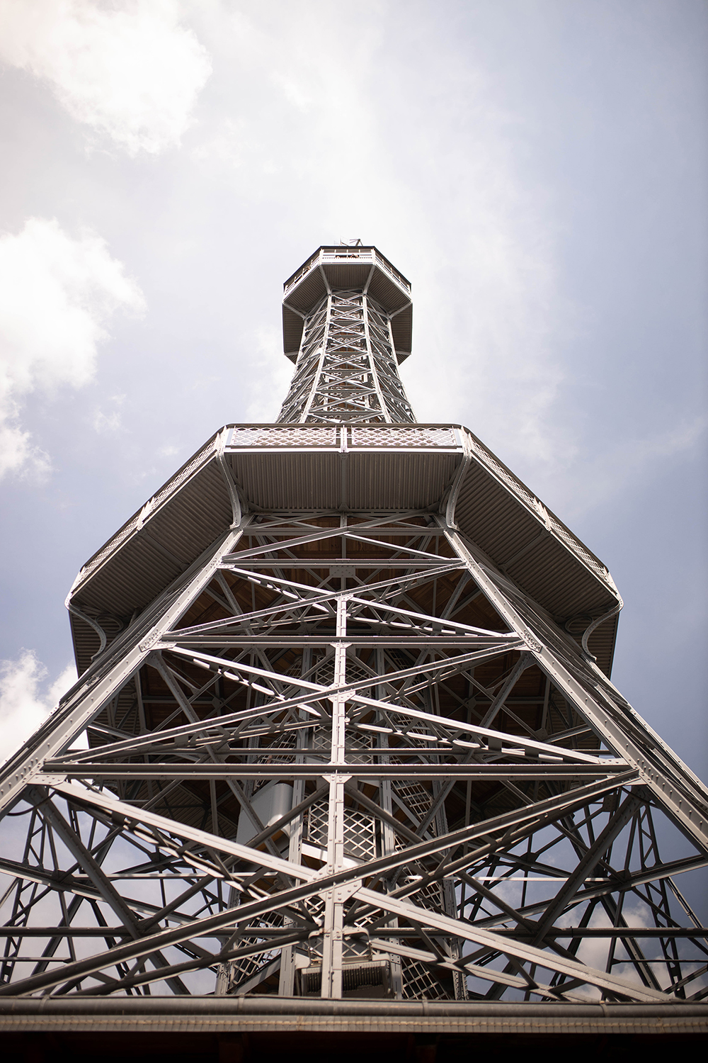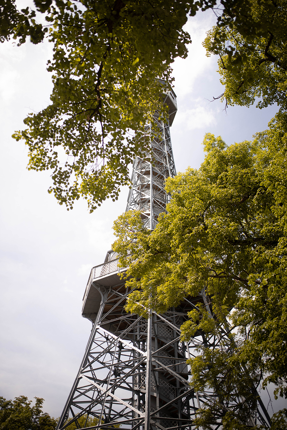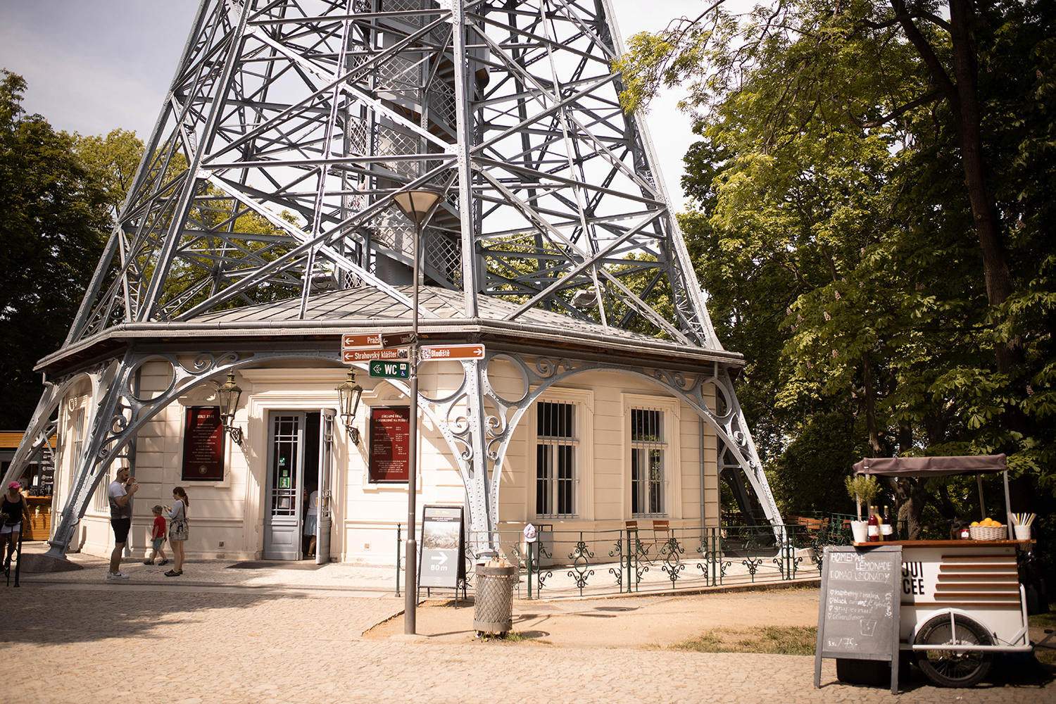 Ha ! ale jeśli myślicie że polecam Wam jakąś sporą zieloną plamę w samym centrum Pragi tylko dla ścieżek i ewentualnych parkowych atrakcji to się mylicie ! Kryje się tu coś jeszcze. Coś wysokiego, do czego musiałyśmy dodreptać. Kto mnie zna ten wie, że z europejskich miast moje serducho zostało w Paryżu. Przeprowadzać się tam nie chcę, z psem nie byłam, ale coś jest w Paryżu co zawładnęło moim sercem i myślami i boleję przeokropnie, że chwilowo nie udaje mi się powrót tam. Rozumiecie więc, że kiedy tylko zobaczyłam, że na szczycie górki postawiono replikę wieży Eiffla w skali 1:5 (Petřínská rozhledna) MUSIAŁAM tam się dostać ! Na wieżę o wysokości 58,70 m można wejść po 299 schodkach a nawet wjechać windą  :