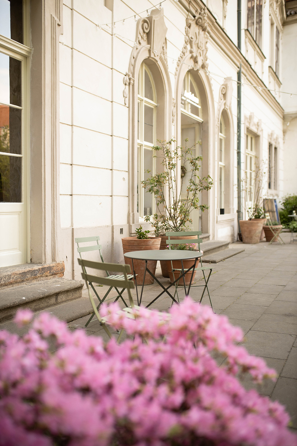 Dodatek: koniecznie, bezwzględnie zaglądajcie w boczne uliczki,  zakamarki, zaułki. Ok, może nie te ciemne i śmierdzące ale na przykład zaraz (prawie w ) przy ścianie Lennona znajdziecie przejście do niewielkiego ogrodu, zaułku z ławeczkami, kwitnącymi na różowo krzakami i miejscem o nazwie Artisieme. Nie pakowałam się tam z Bu, ale zajrzałam sama, pooglądałam przepiękną ręcznie robioną ceramikę i nie tylko. Jest tu też kawiarnia Cafe de Paris ( nie byłyśmy, ale klimacik stoliczków kusił, gdyby nie to, że zaliczyłyśmy wcześniej przydziałową kawkę, pewnie byśmy tu się też rozsiadły) Tak więc nie spieszcie się , miejscie oczy szeroko otwarte, bo nigdy nie wiadomo, co akurat Was wciągnie 🙂