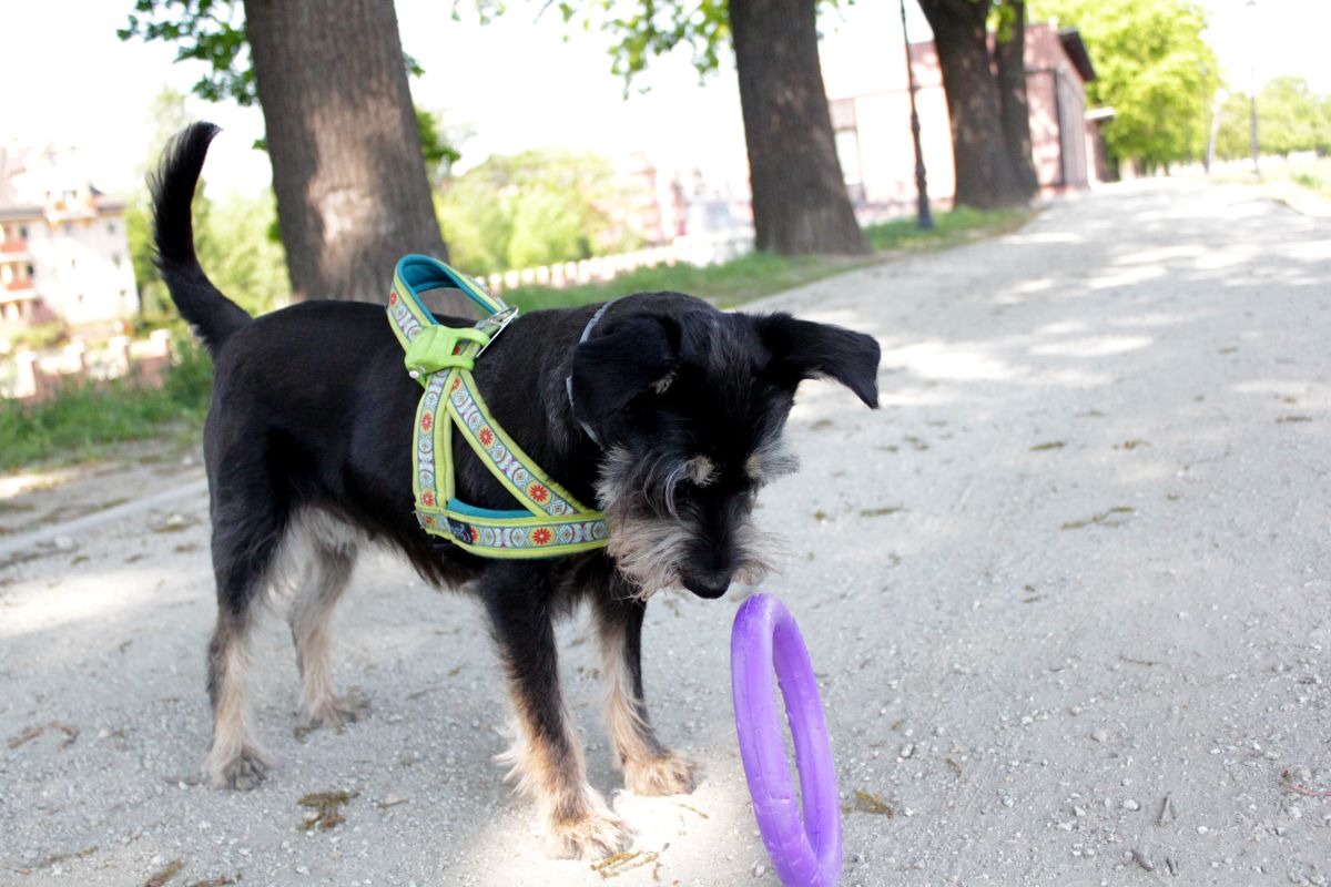 • Wielkość – dla Pufiozy bardzo dobra, nawet po odchudzaniu ładnie zatrzymuje się na barkach. Wracając do koloru, podoba mi się kontrast między czarną sierścią a fioletem Pullera. Zastanawiam się jakby na innym futrze wyglądało.