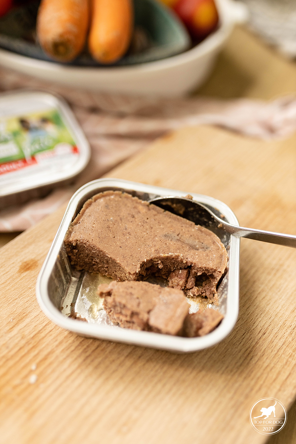 Z mojego punktu widzenia tego typu opakowanie jest bardzo przyjemne na co dzień. Mam nadzieję, że wiecie, że jedzenie-psie czy ludzkie, nie ma znaczenia, po otwarciu puchy, należy od razu z niej wyjąć i przechowywać już w lodówce w czymś innym. Słoiczku czy jakimś pojemniczku z tworzywa, do tego przeznaczonym. Absolutnie nie wolno zostawiać jedzenia w otwartej już puszce. Dochodzi tam wtedy do jakiś procesów bodajże utleniania, przy okazji których do jedzenia dostają się szkodliwe substancje. Jeśli ktoś chce dbać o zdrowie piesków , zmuszony jest do przemieszczenia jedzenia. Albo do bycia miłym i dania pieskom wszystkiego na raz, ale zakładamy że tak nie jest 😉
