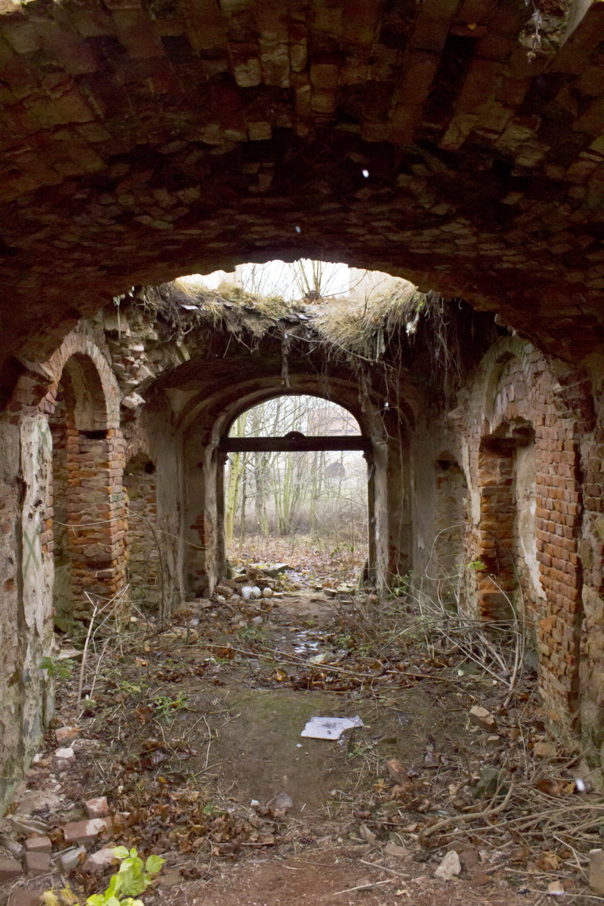 Część miejsc, które chciałabym zwiedzić nie nadaje się do poznawania w towarzystwie futer i bez odzienia w buty typu treki. Często zdarza się gruba warstwa śmieci niewiadomego pochodzenia, szkła i jeszcze innych, gorszych rzeczy. W przypadku Kamionnej, poza dosłownie kilkoma śmieciami jak papierzyska i resztka podłogi typu gumolit nie było żadnych śmieci! Szok! Może dlatego, że ruina jest w tak małej mieścince, dobrze ukryta wśród drzew, do której dostępu w okresie libacji w plenerze strzegą gęste pokrzywy.