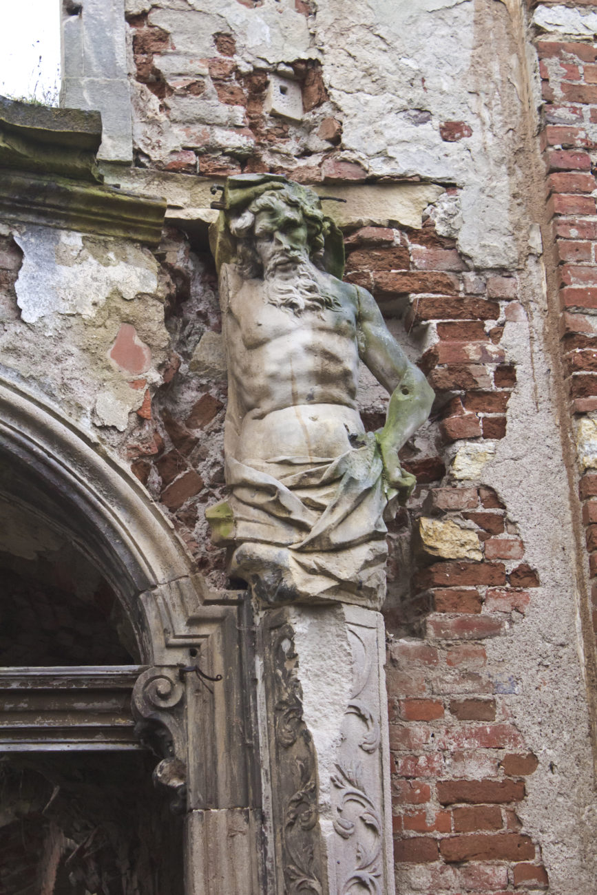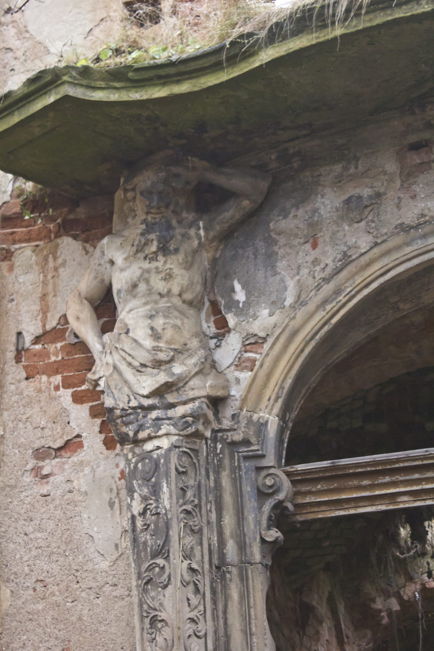 Żeby trafić do ruin ja polecam znaleźć we wsi figurę Jana Napomucena. Nie da się przeoczyć. Mijając figurę z prawej strony, skręcamy w lewo w duże podwórze. Ja trafiłam na przemiłą starszą Panią, taką w dawnym stylu, z laseczką i chustką na głowie, która poinformowała mnie, że nie ma żadnego problemu, mogę sobie wjechać, fotografować i oglądać ile tylko chcę.