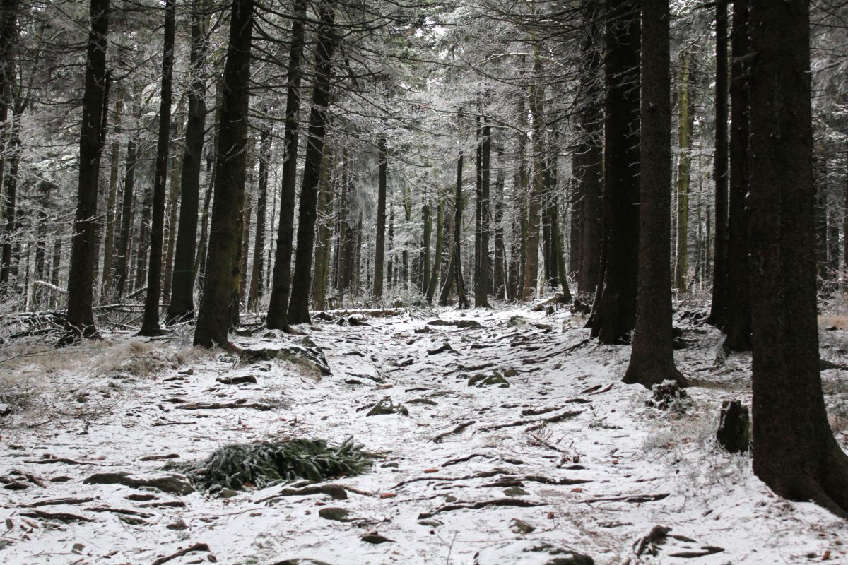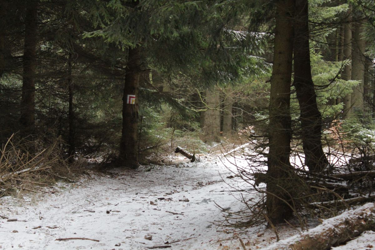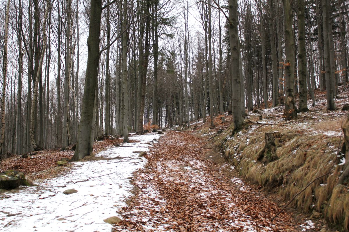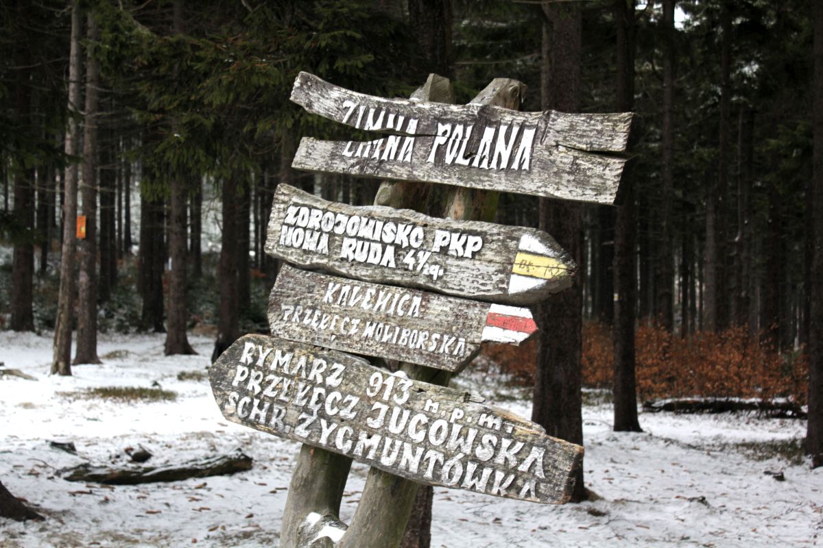 (Z Kalenicy cały czas czerwonym, nadal przez las, do Zimnej Polany. Stąd jest kilka odbić w różnych kierunkach. Plus dla całej trasy za dobre oznakowanie)