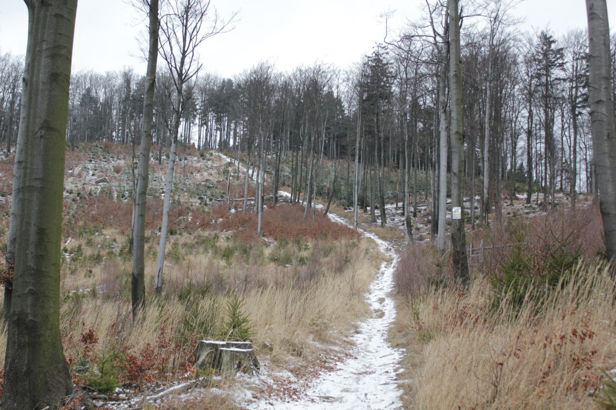 (Z Polanki dalej szliśmy szlakiem czerwonym, prowadzącym głównie przez las. Jeśli przyjdzie nam do głowy wrócić tam latem, miło będzie dreptać w cieniu 🙂 )