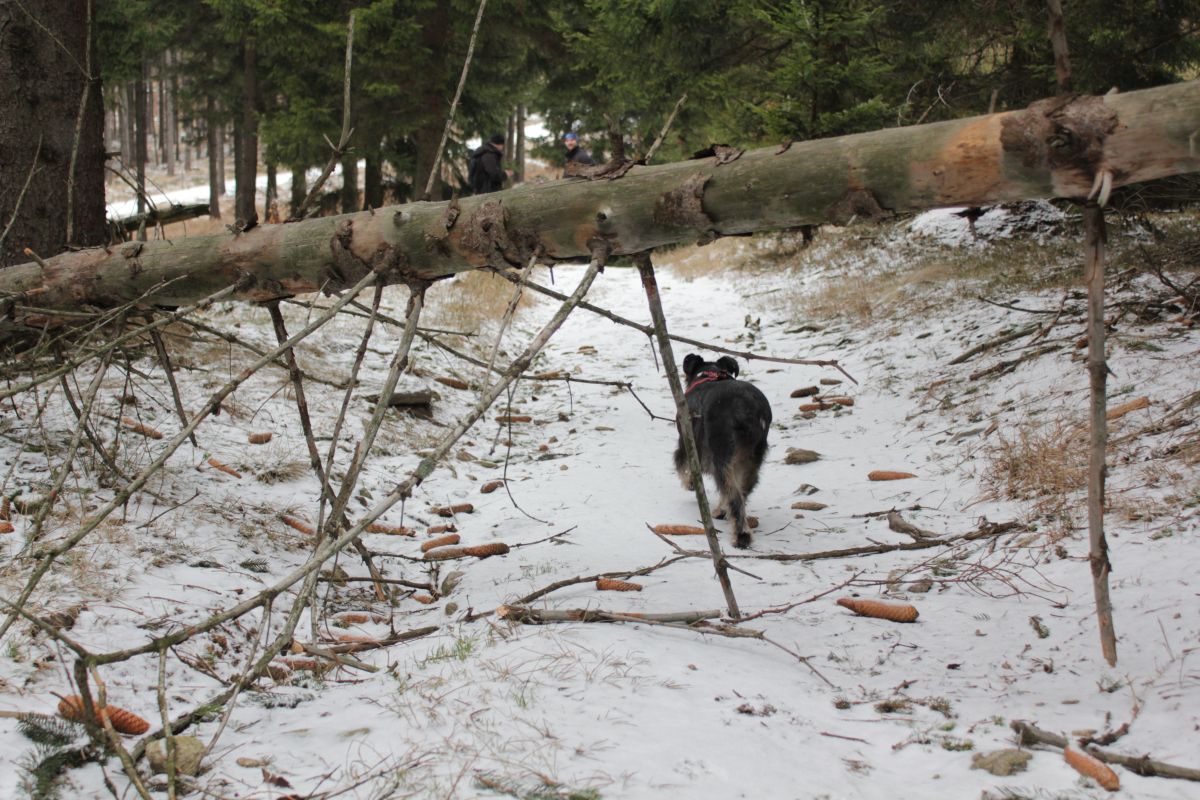 (Nie wiem czy to nasze szczęście, czy kwestia pory roku ale na całej trasie bardzo często spotykaliśmy powalone w poprzek ścieżki drzewka. Niby nic, ale często nasz szlak był częścią trasy MTB – życzę dobrego wzroku i refleksu rowerzystom)