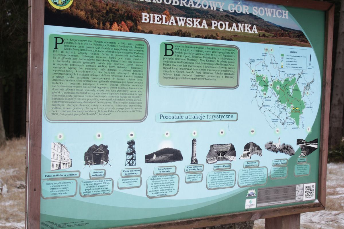 (Szlakiem MTB doszliśmy znowu do Bielawskiej Polanki a stamtąd prosto do auta. Widoki jakie nam towarzyszyły przez całą drogę dla mnie były cudowne. Żadne słońce nie da takich efektów wizualnych jak gęsta, górska mgła 🙂 W aucie zasiedliśmy o 16.20 bez zbytniego spieszenia się. Idealnie żeby wrócić do domu na podwieczorek 🙂 )