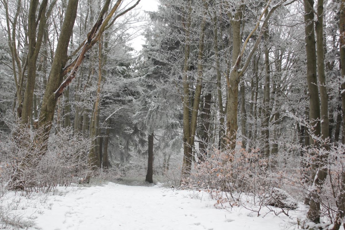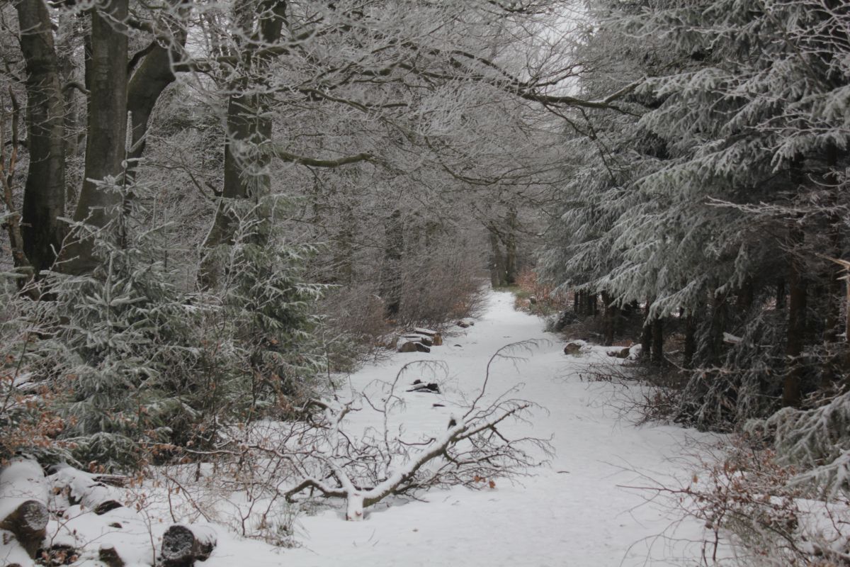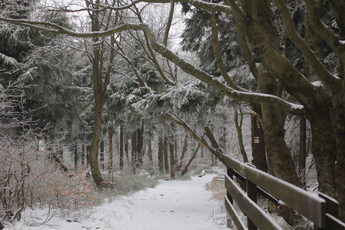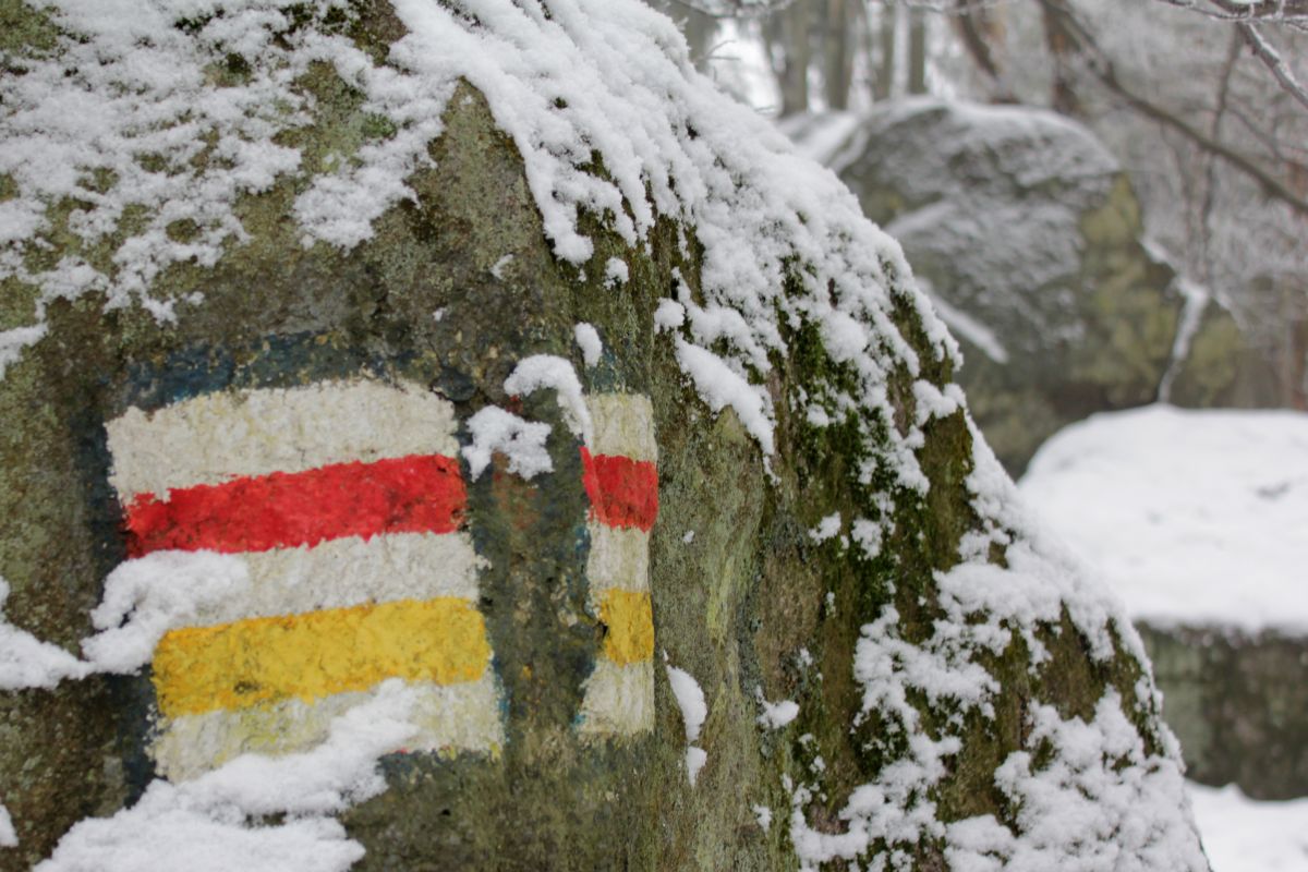 Tak jak wspominałam ambicje wielkie więc na szlak czerwony, na Przełęczy Woliborskiej weszliśmy dokładnie o 9.15. Mieliśmy okazje schodzić nim ostatnio więc do Bielawskiej Polanki wiedzieliśmy czego się spodziewać. Na tym odcinku jest praktycznie tylko jedno trochę bardziej męczące podejście, więc nie trzeba się obawiać zbytniego zasapania, a i zimą jest to możliwość rozgrzania się czymś innym niż targana ze sobą herbata w termosie.