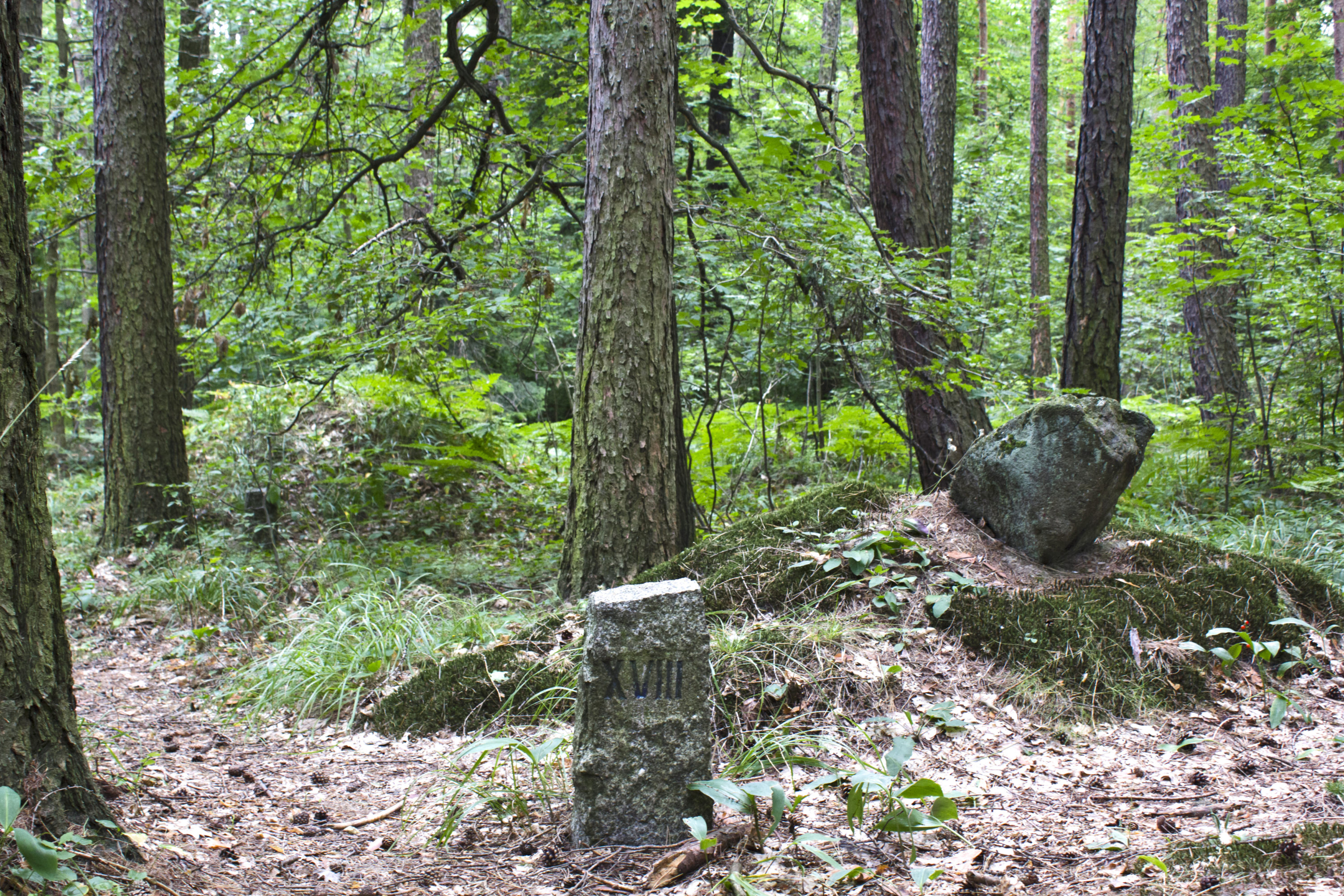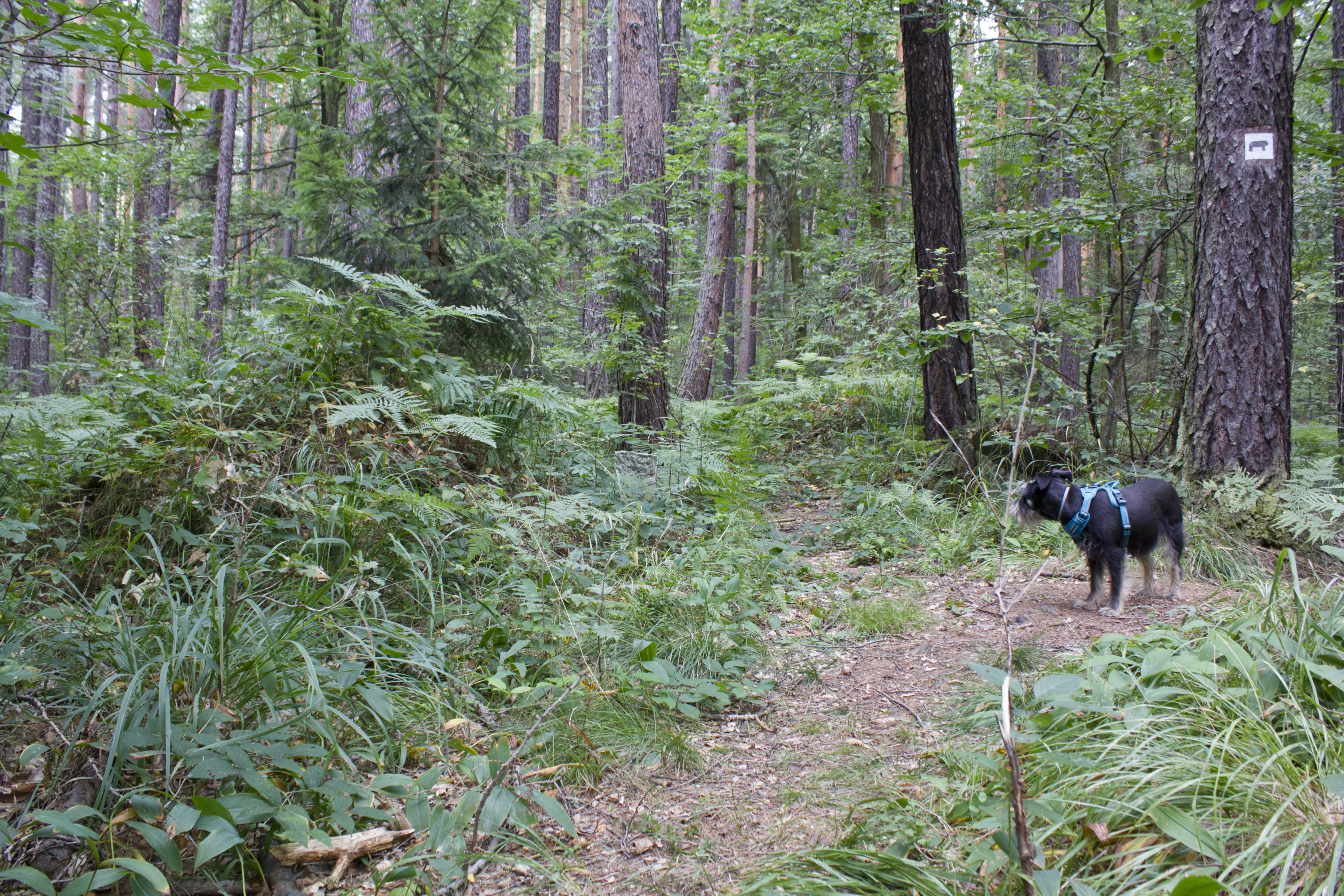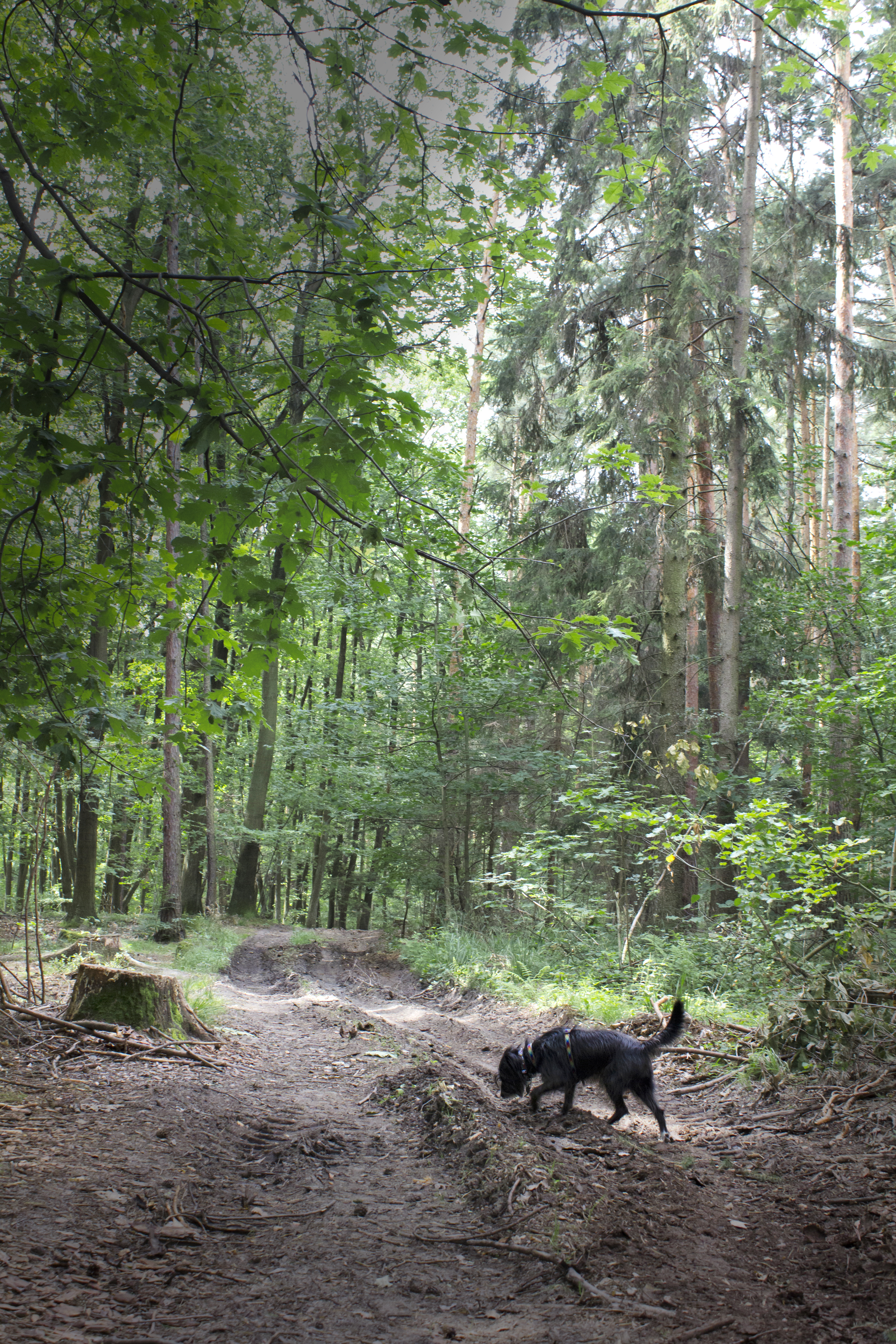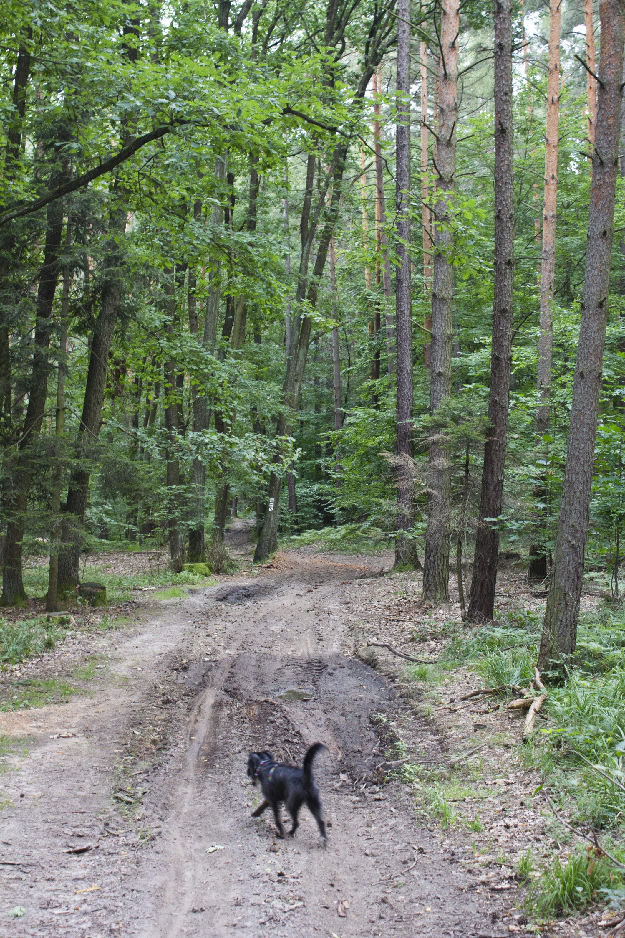 Zwiedzanie nie zajmuje zbyt wiele czasu, ale to nie wszytko co możemy tu zobaczyć. Idąc dalej, około 10 minut (z rzucaniem piły Bu, fotkami i czekaniem na Pufę, która ostatnio lubi sobie zamarudzić z tyłu, przy okazji super zapachów) dochodzimy do cmentarzyska kurhanów. Datowane na VIII-IX wiek, w ilości 50 sztuk – gratki dla tego który znajdzie wszystkie, w większości wyglądają jak zwykłe pryzmy ziemi. Ja nie podjęłam się teraz tego zadania, większość kurchanów znajduje się między drzewami, a to oznacza starcie z pająkami. Ponad moje siły 🙁 Te okropne robactwo kroczące (mam antypająkowe psikadło do domu, na którym tak uroczo creepy je nazwano, brrrr) jeszcze tego dnia miało mi kolejny raz pokrzyżować plany :/