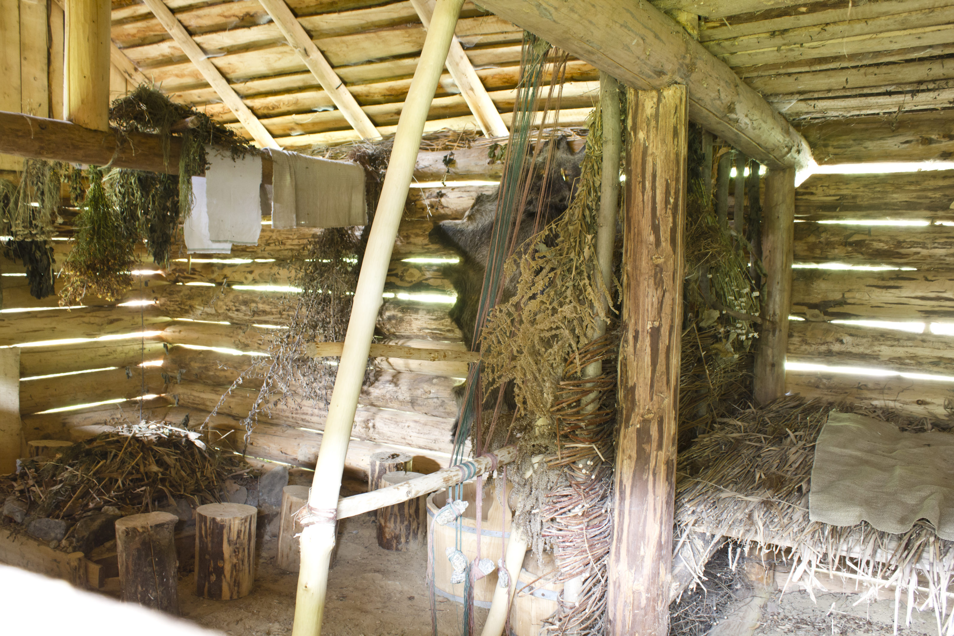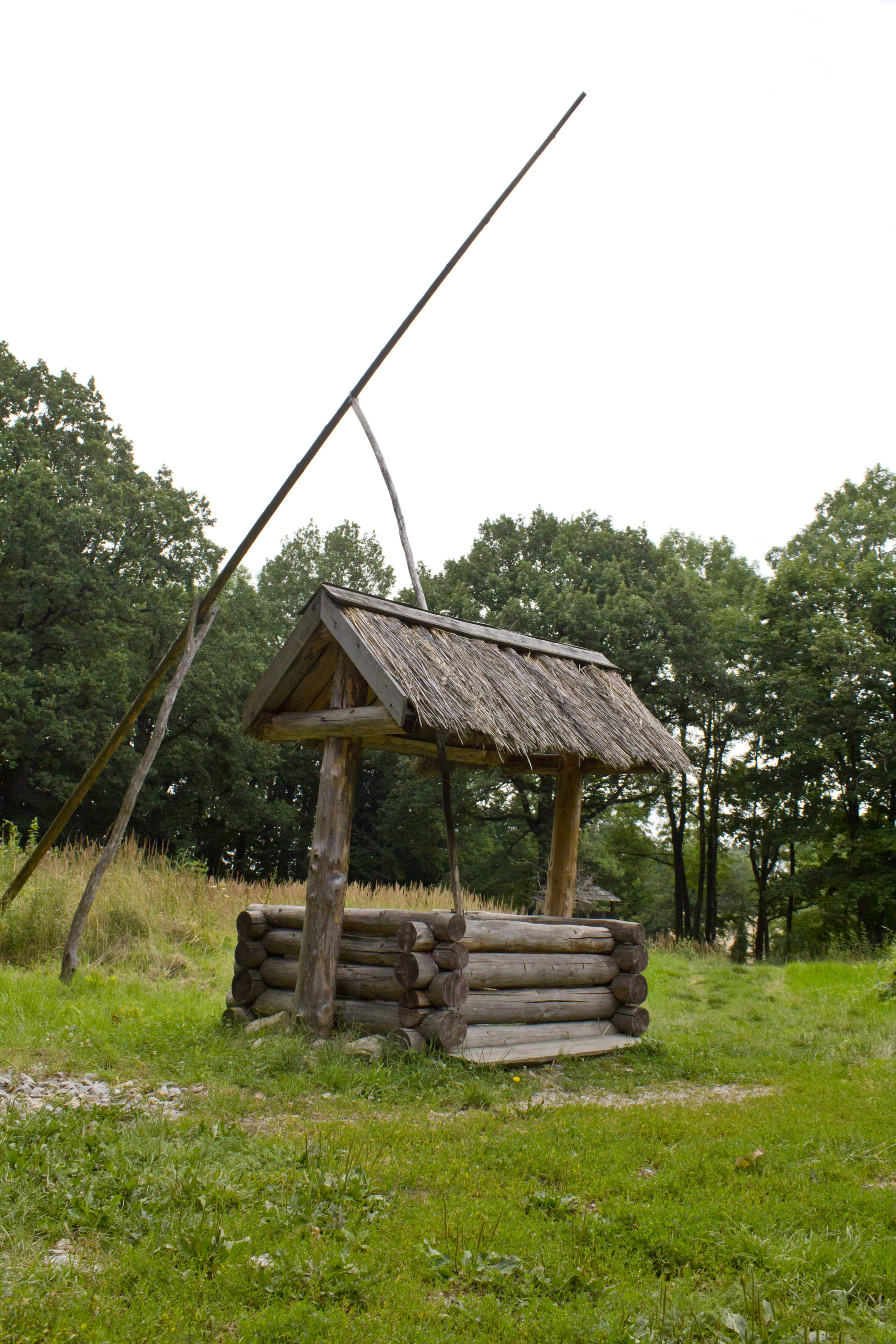 Na miejscu nie należy się spodziewać drugiego Biskupina, chociaż klimat i zapach podobny 🙂 Tutaj tylko trzy chaty, pozorowana studnia z żurawiem. Ale ale, kukając przez okienka widać, że chatki są urządzone. Podejrzewam zatem, że przy jakiś okazjach jest toto otwarte i coś się tu dzieje. Będę teraz uważniej śledzić informacje, może następnym razem wybiorę się tak, żeby się napatrzeć i dowiedzieć czegoś więcej 🙂