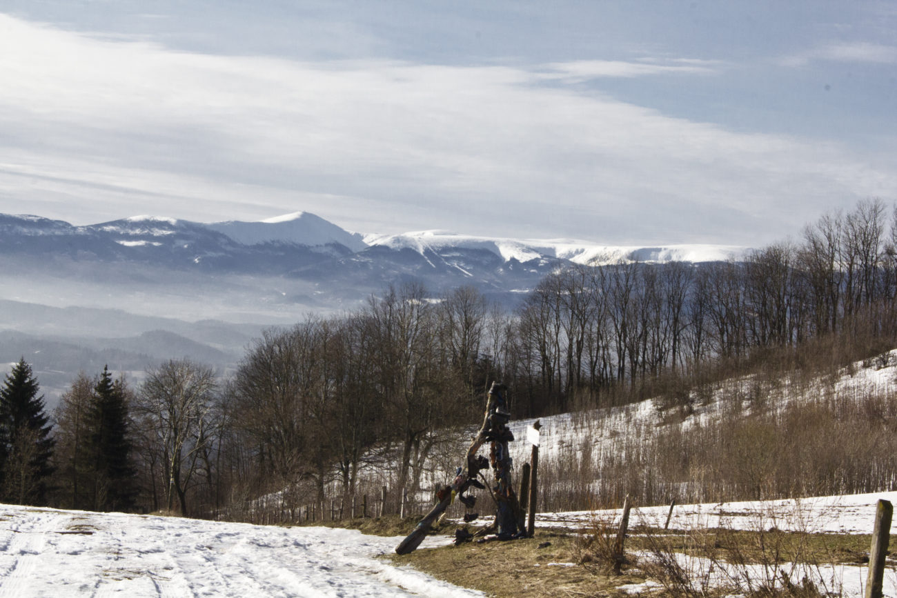 To co kojarzy się ze Skopcem a konkretniej z Przełęczą Komarnicką to rzeźba z 2013 roku, lokalnej artystki Magdaleny Osak, o wdzięcznym tytule „Droga w Błękit” .