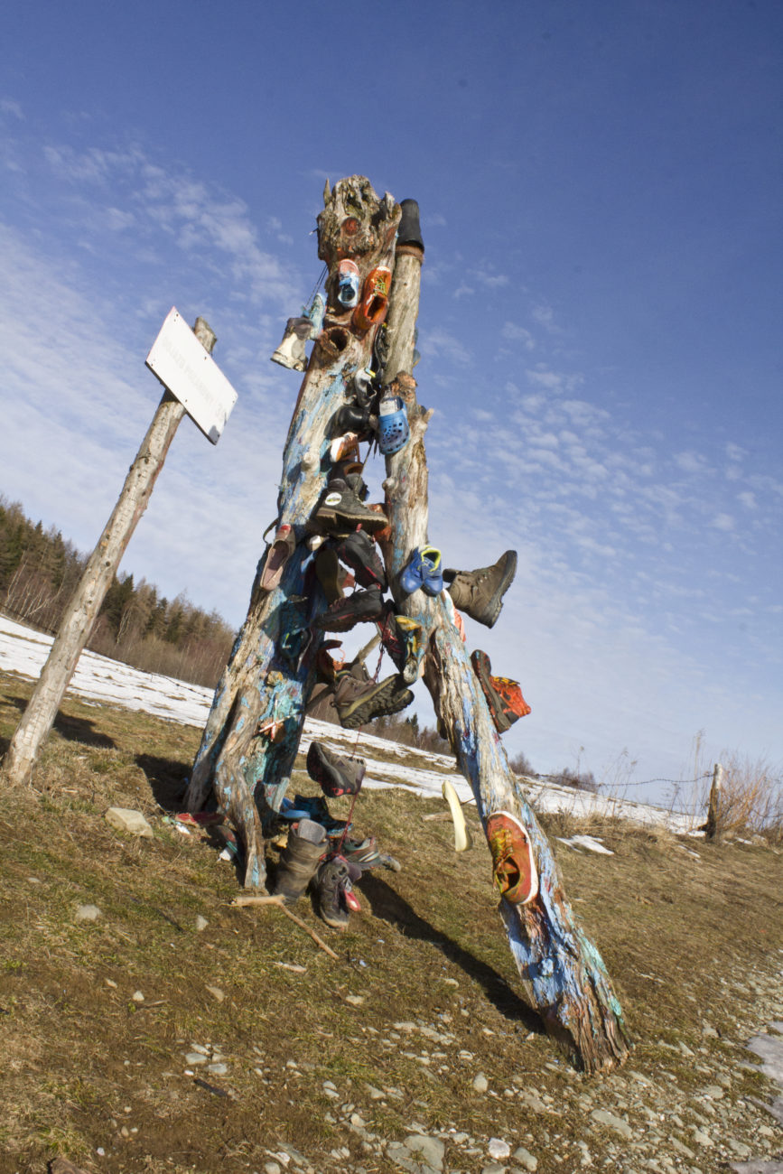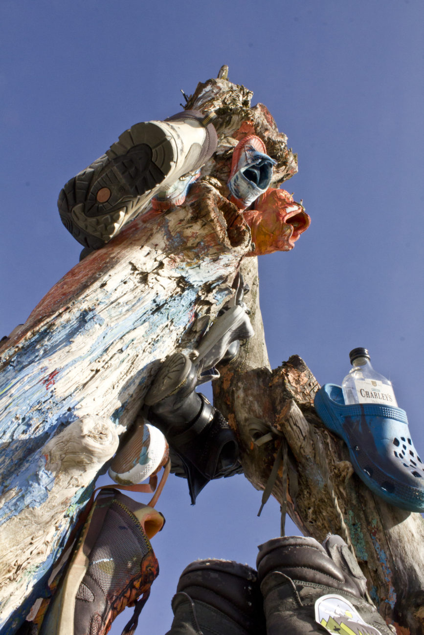 Jednym się podoba, drugim nie. Ja jako absolwent ASP, nie rzeźby, ale jednak, wyrażam swoje zdanie i mówię, że podoba mi się! w tym miejscu , stanowiąc już od dawna symbol, kojarzony nawet przez tych , który jeszcze tu nie dotarli, prosta w przekazie, trafia do mnie jako do kogoś kto po górach łazi i kilka takich par butów już zajechał a tekst „a góry nade mną jak chmury, a chmury nade mną jak góry” zna bardzo dobrze. Czy właśnie ścierając kolejne podeszwy górskich butów nie próbujemy być bliżej błękitu? Nieskończoności? Spokoju i przestrzeni? W innym miejscu ta rzeźba by nie zaistniała. Ze strony artysty mówię : dzieło jest niepełne bez kontekstu