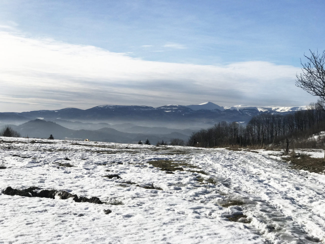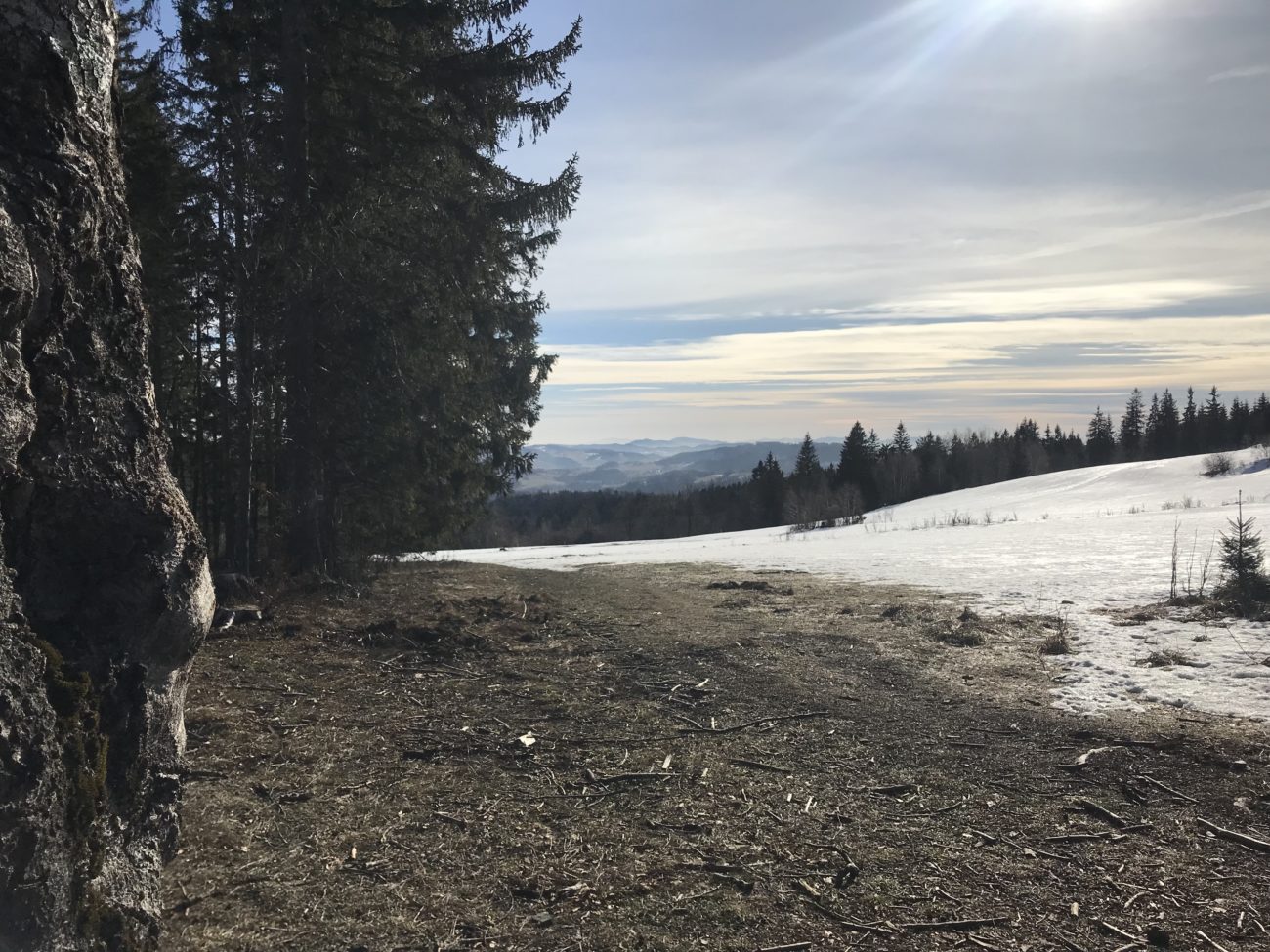 Po zejściu niżej i wyjściu z lasu znowu byłyśmy na bezlodowej, bezśnieżnej trasie. Słoneczko robi swoje 😉