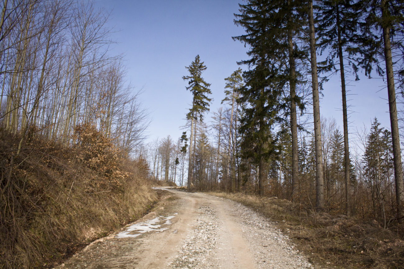Zaliczyłyśmy Baraniec, skoro i tak jesteśmy obok, mała nawrotka i na ścieżkę oznaczoną jako szlak niebieski. Przeprowadziła nas przez kilka skrytek geocachingowych oraz przy Ziemskim Kopczyku i Leszczyńcu. Kawałek za nim, po minięciu wybiegu dla koni wykonałyśmy strategiczny zwrot przez lewe ramię i weszłyśmy na ścieżkę nie noszącą żadnego koloru, która mijając Chróstnik doprowadziła nas prawie do początku trasy.