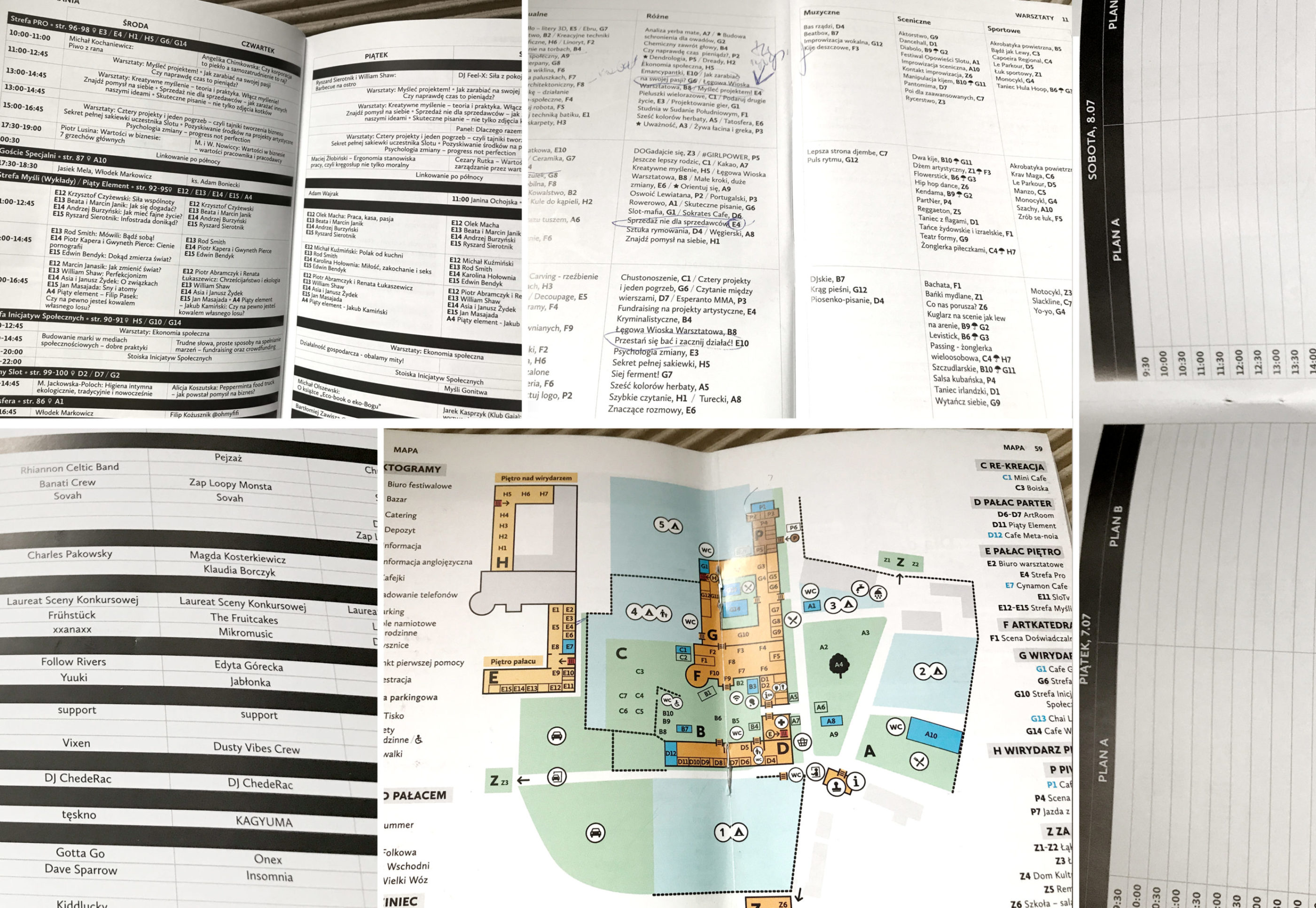 Jeśli interesuje Was to przepiękne miejsce polecam zajrzeć TUTAJ. Ja niestety spędziłam w tym miejscu tylko jeden dzień. Cena biletu to wstęp od godziny 11 do południa do 11 następnego dnia. Daje to możliwość uczestnictwa we wszystkich 3 turach zajęć i warsztatów, spotkaniu z gościem specjalnym, każdego dnia innym, koncertach odbywających się niemal równolegle na kilku scenach. Można swobodnie wchodzić i wychodzić, korzystać, przemieszczać się pomiędzy zajęciami, dowolnie chillować, a wszystko pod czujnym okiem slotowej obsługi robiącej coś, co mnie utwierdziło w przekonaniu, że spędzimy tam miło czas we 3 czyli ja i futra. Pilnującej niewnoszenia alkoholu, niespożywania i alko i innych średnio fajnych rzeczy. Myślę, że miedzy innymi to zagwarantowało super atmosferę, brak drących się, dziwnie zachowujących się ludzi. Wielki plus dla Was Slot!