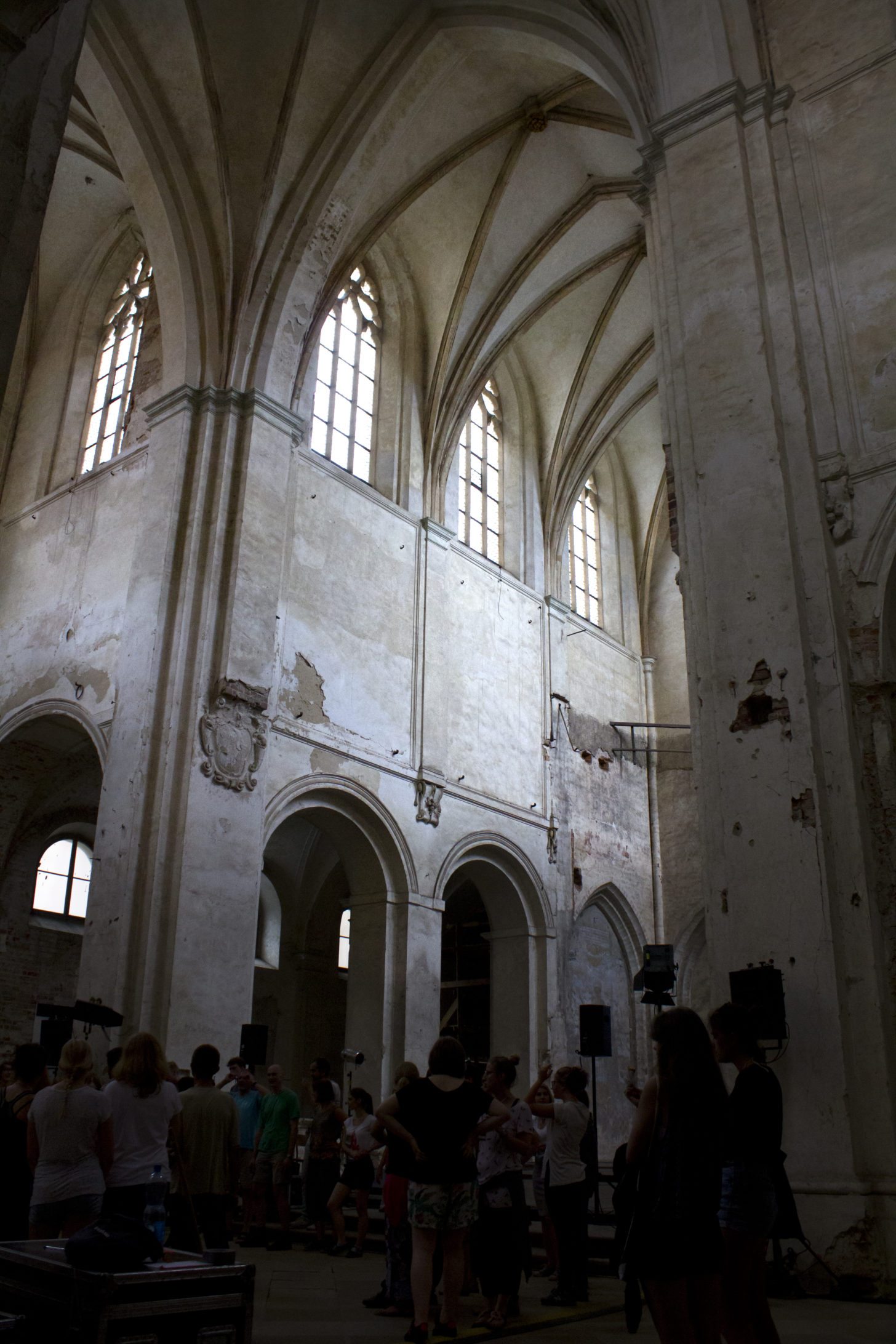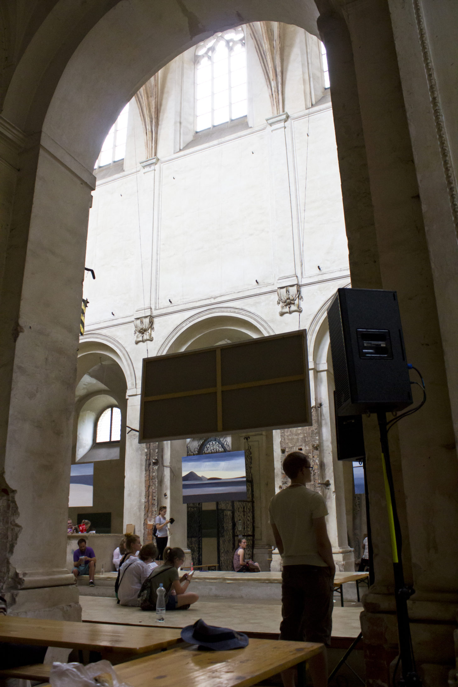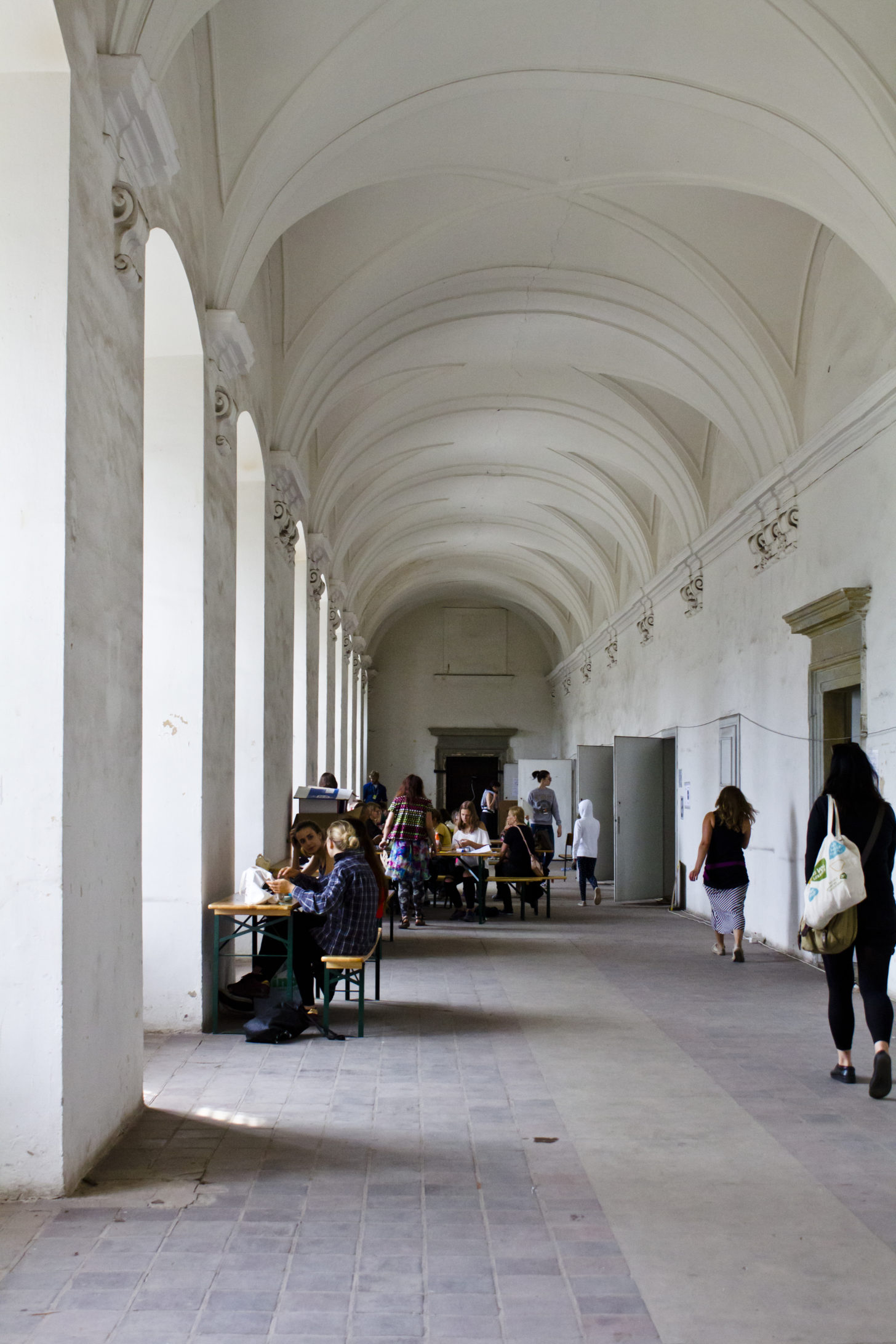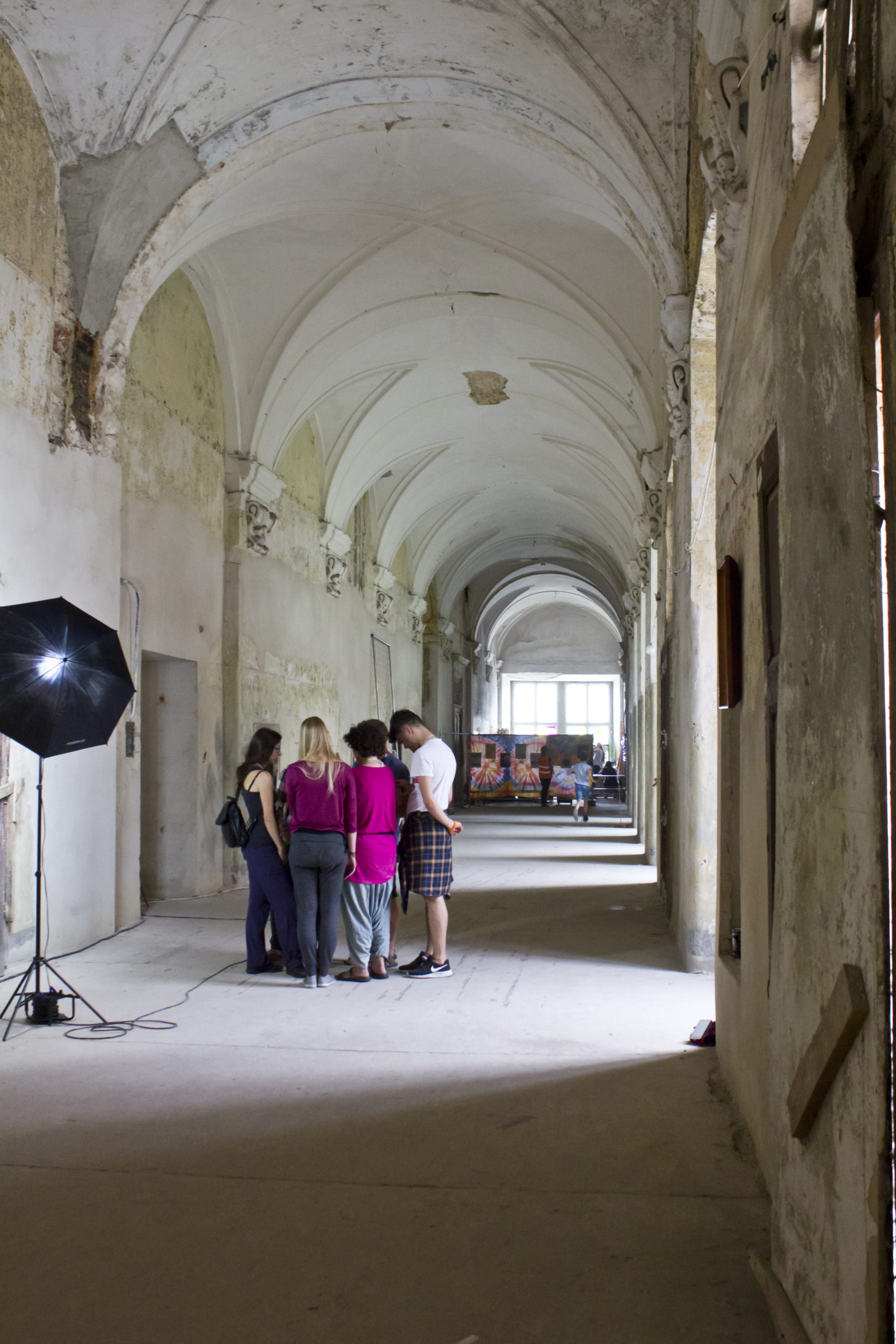 Całość imprezy odbywa się w zabytkowym opactwie pocysterskim w Lubiążu. Potężny budynek o samej fasadzie liczącej.. 223 metry! (heloł, to tak na dobrą sprawę grubo ponad 10 długości mojego mieszkanka!), całość jest 2,5 raza większa od Wawelu (heloł nr 2!) i przez 5 dni tętniąca wydarzeniami prawie przez całą dobę. Jako architekt wnętrz, ale jednak 😉 jestem zachwycona tą scenerią. Kontrast architektury barokowej z wydarzeniami nadawał momentami surrealistyczny wymiar wszystkiemu wokół.