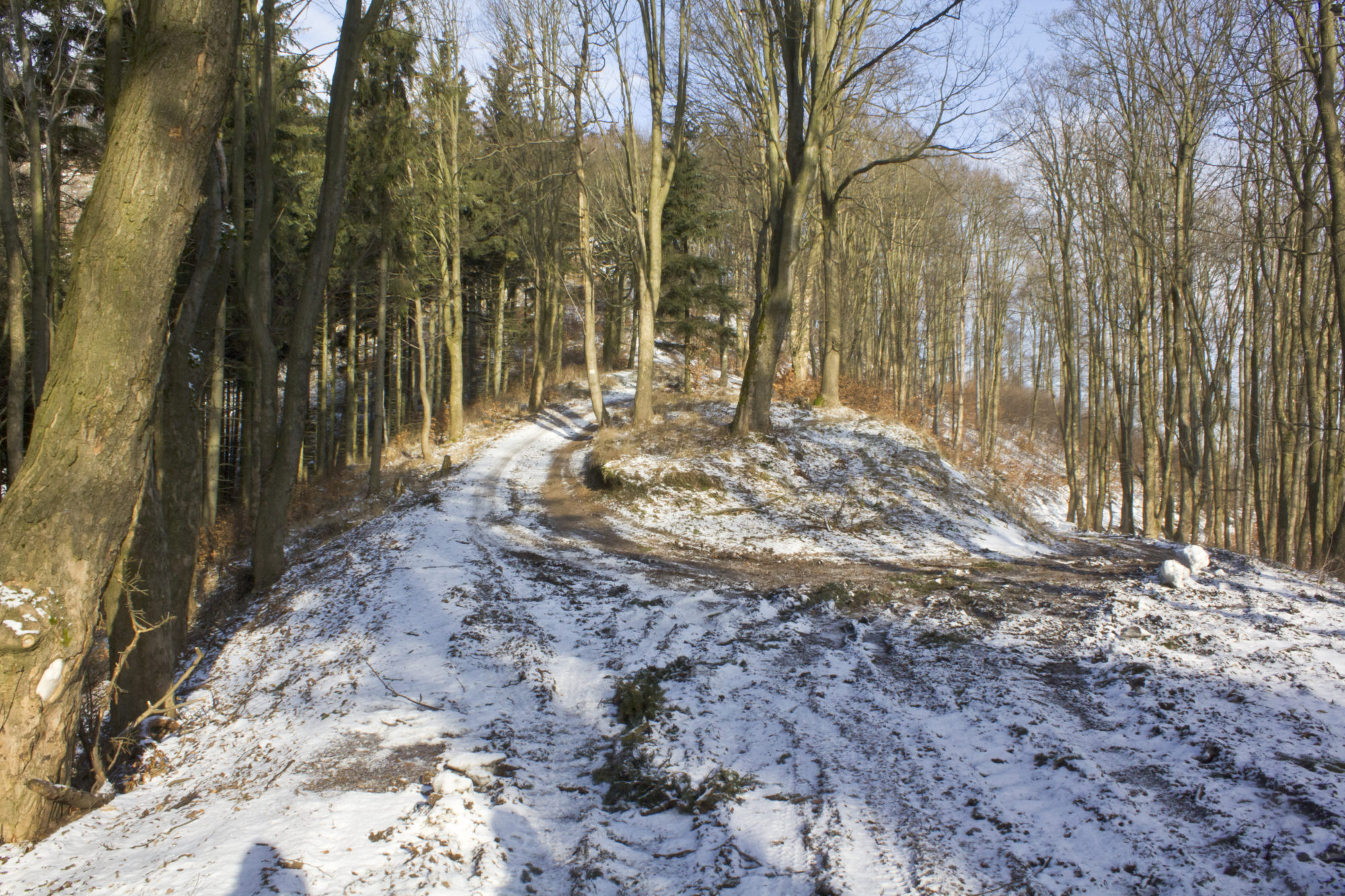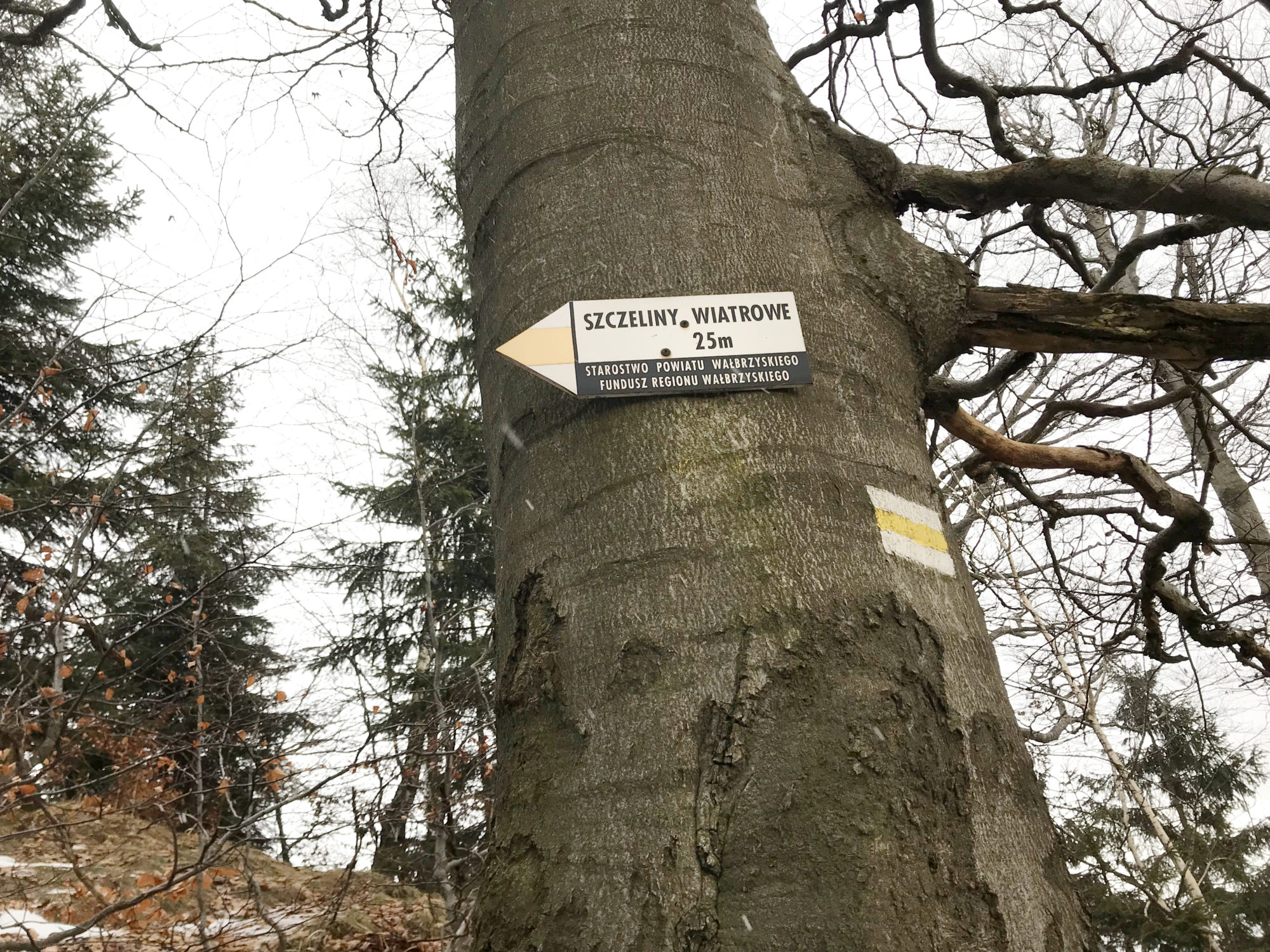 Jeśli ktoś nie pamięta przypominam- mamy dar do gubienia się. I to nie przez roztargnienie. Roztargniona chwilami to jestem ja, szczególnie mając misję zrobienia fajnego zdjęcia suczydłom. Dlatego zabieram ze sobą P. 😀 Mamy mapę dobrego wydawnictwa, po przygodach na Raduni sprawdzam aktualność szlaków papierowych z tymi na portalu mapa-turystyczna.pl . Wiedziałam zatem , że akurat TA trasa jest właściwie oznaczona na mapie. Gdzie zatem kłopot już na I etapie ? Ano w oznaczeniach a raczej ich braku. Nie to żeby ich nie było wcale! co to to nie, jest ich po prostu za mało jak dla mnie . Mamy 2 teorie: zimą nie widać permanentnie wydeptanych ścieżek lub ta trasa jest tak mało uczęszczana, iż ktoś uznał , że osoby wypuszczające się akurat tędy są wyjadaczami i mają mapę terenu wrytą w mózgownicę tak mocno , że rozstaj dróg bez żadnej szlakowej podpowiedzi to dla nich nie problem.