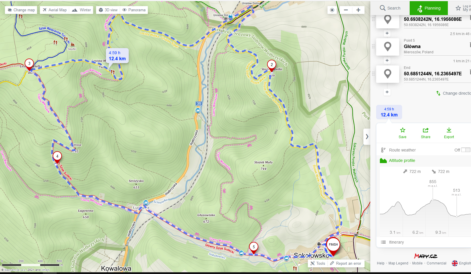 Szczęśliwie odnalezieni na szlaku czerwonym dość szybko zeszliśmy do Sokołowska. Niestety przez gęste chmury jakie towarzyszyły nam podczas przejścia do Lesistej nie mieliśmy okazji podziwiać widoków. Czyli kolejna trasa koniecznie do powtórzenia, ale zrobimy to z przyjemnością 🙂