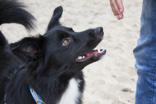 (Dziękuję Positive Dog za zdjęcie. Jak widać czasem Bu ma swoją interpretację egzaminacyjnego zadania pt. „luźna smycz” – ale trzeba przyznać jest luźna 😛 )