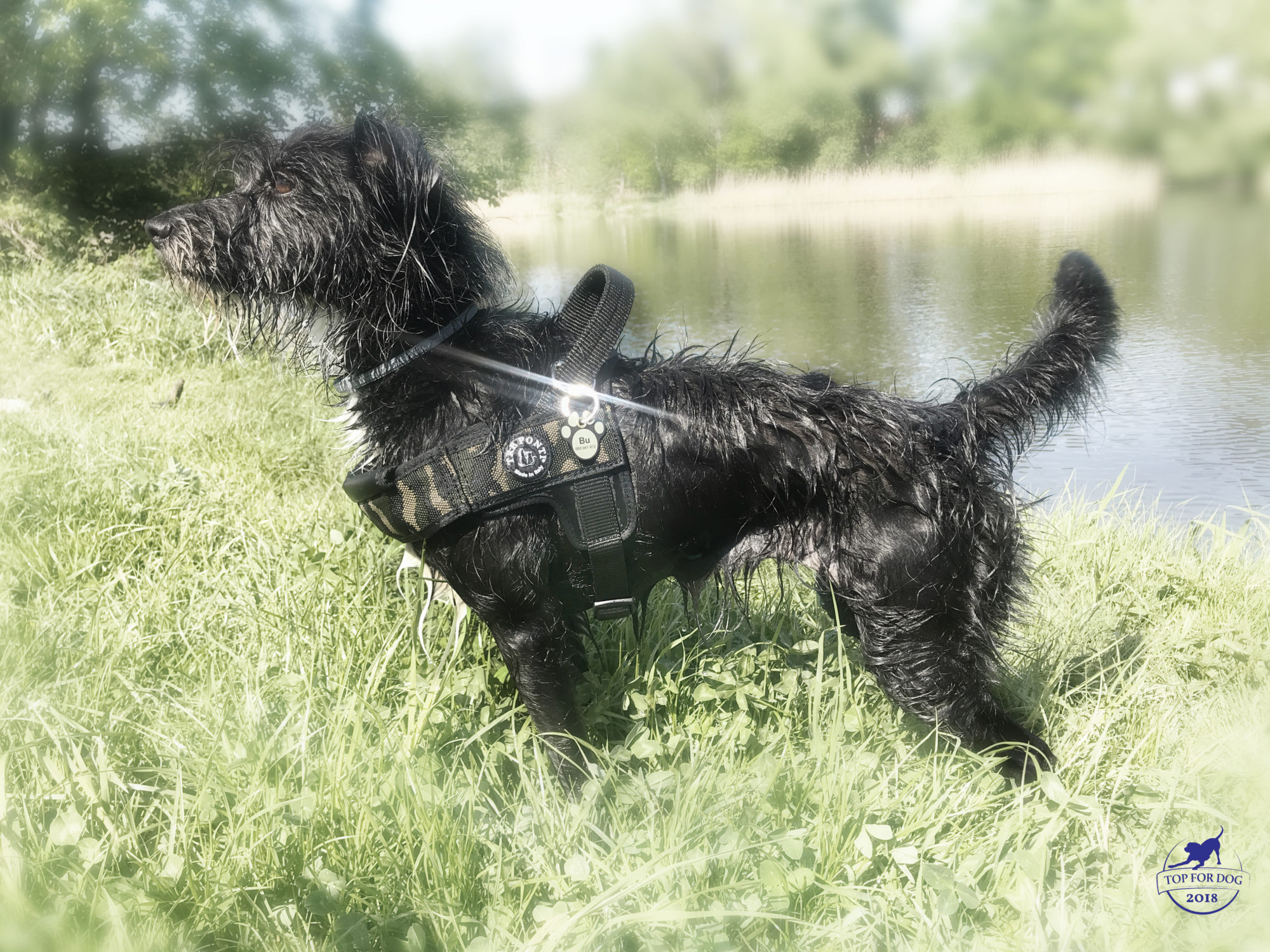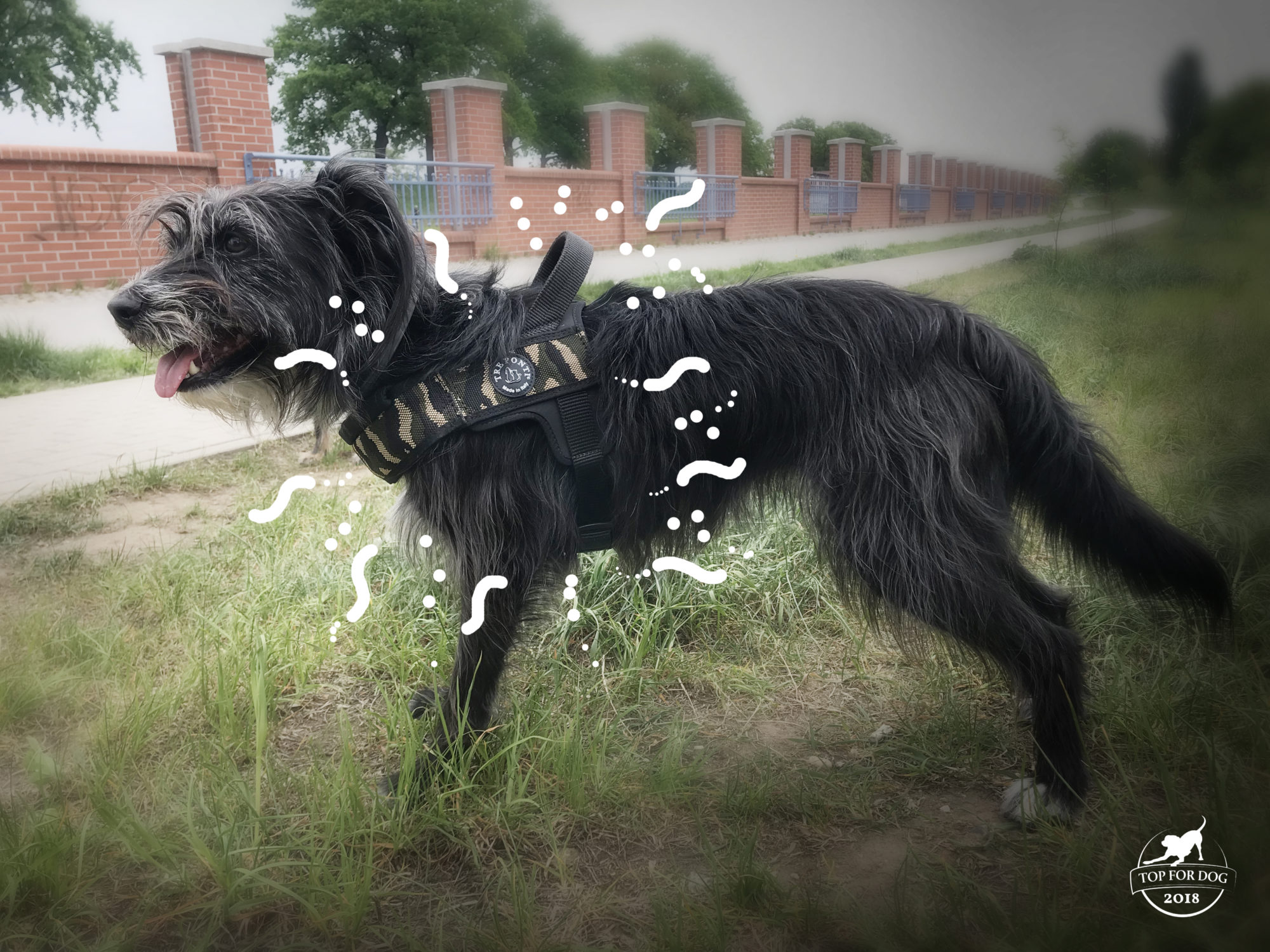 Kiedy dostałyśmy propozycję testów szelek od TRE PONTI pomyślałam, że to idealna sprawa dla Pufy. Cóż, wyszło jak zawsze czyli potwierdziło się, że Puf jest totalnie niewymiarowa i na jej klatę pakera nic nie pasuje, szczególnie kiedy ja to wymierzę. Nie wiem jak to się stało, że moro szelki wleciały na grzbiet Bu – może była to chwila rozpaczy, że takie bajeranckie akcesorium nam nie pasuje. I nagle niebiosa się rozstąpiły, w tle zagrały chorały anielskie, a szele idealnie wpasowały się na Bukosławę. Serio. To było jakiś czas temu, a ja uważam to za zrządzenie losu. Od ponad miesiąca Bu w ramach crash testów na dłuższe wybiegania w mieście i po wałach, kąpiele w Odrze i wypady różniste popitala w szelkach!