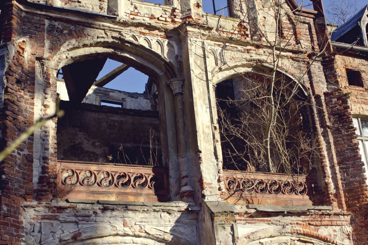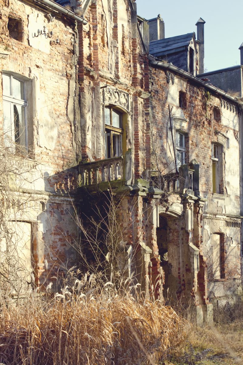 Ta konkretna jest cofnięta względem głównej drogi, prowadzi do niej trakt, jadąc którym ma się wrażenie wjeżdżania na czyjąś posesję – budynki przynależne pałacowi, podobnie jak w innych miejscach tak i tu są zamieszkane. Trzeba się trochę przełamać i wbić. Ja mam troszkę łatwiej, któryś rok już utrzymuję, że te zdjęcia to taki projekt na ASP, „zagospodarowanie przestrzenne budynków historycznych przy wykorzystaniu koligacji stylistycznych zaczerpniętych z art deco” itp. Im więcej słów branżowych tym bardziej ludzie wokół maja mnie w nosie, a ja mam wolną rękę do focenia 🙂