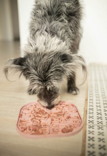 Muszę więc wybierać płytsze opcje, o mniej skomplikowanych wzorkach. Mata od Fiboo wpadła więc do nas w idealnym momencie. W czasie wymiany mat do wylizywania i wygrzebywania na Pufiaczkowo przyjazne