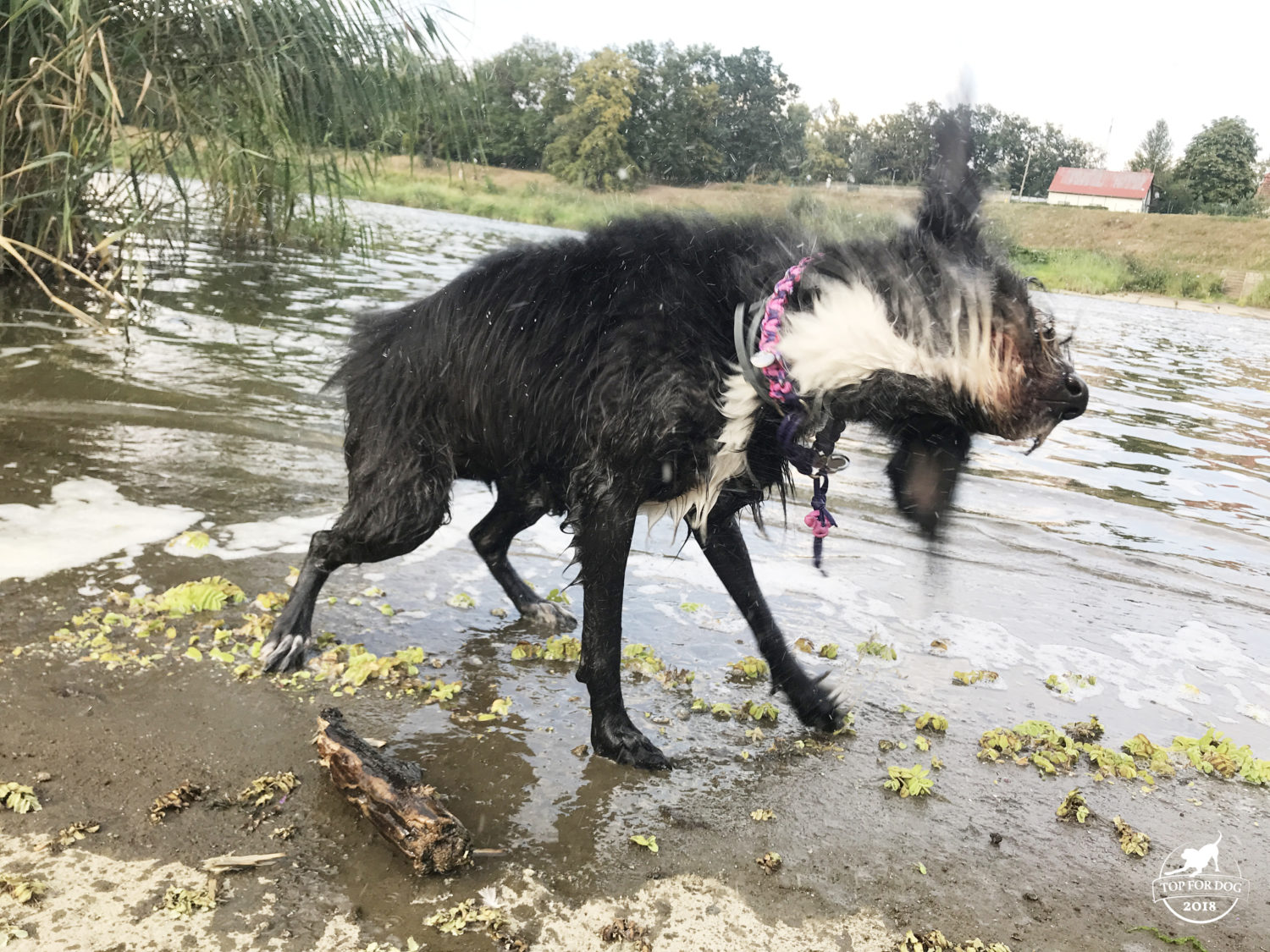 A że to testy, to nie podarowałam sobie i Bu przyjemności sprawdzenia tego. Pozwoliłam Oszołomkowi kąpać się w obroży, tarzać i panierować i w trawie i w piachu a to wszytko cały czas na mokro. Bu była przyodziana w ten outfit na paradzie parowozów gdzie ilość podnoszonego kurzu i sadzy była prawie taka jak w smogowy dzień. Przy czym na Paradzie pachniało ładnie 😉