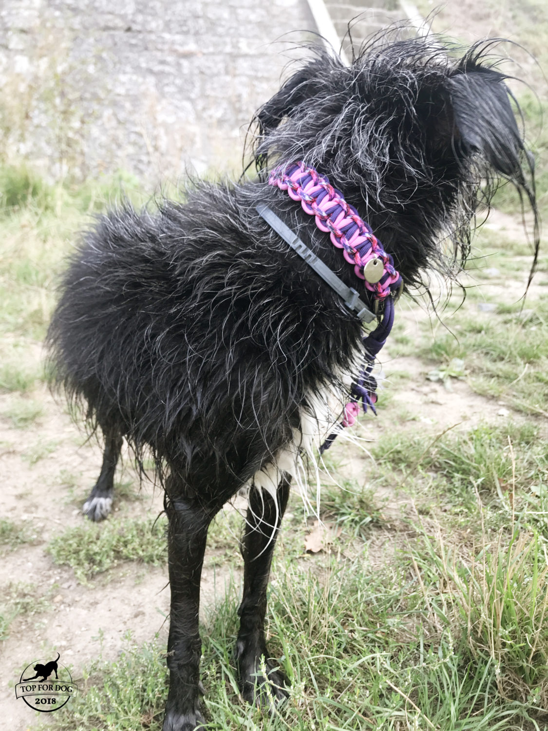 Powiem Wam szczerze , że mimo iż obroża mi się okrutnie podoba, jestem nią zauroczona, to miałam spore wątpliwości jak będzie się ją użytkowało, ze względu na zakamarki . Na szerokości około 2,5 cm cm jest TYLE miejsc w które może dostać się bród ,błoto, roślinność, niezidentyfikowane śmierdzące rzeczy wprost z wody i co gorsza- nie chcieć stamtąd wyjść . Splot jest bardzo silny, nie ma szans na wciśnięcie czegokolwiek pomiędzy parakordowe sznureczki ale jednak.