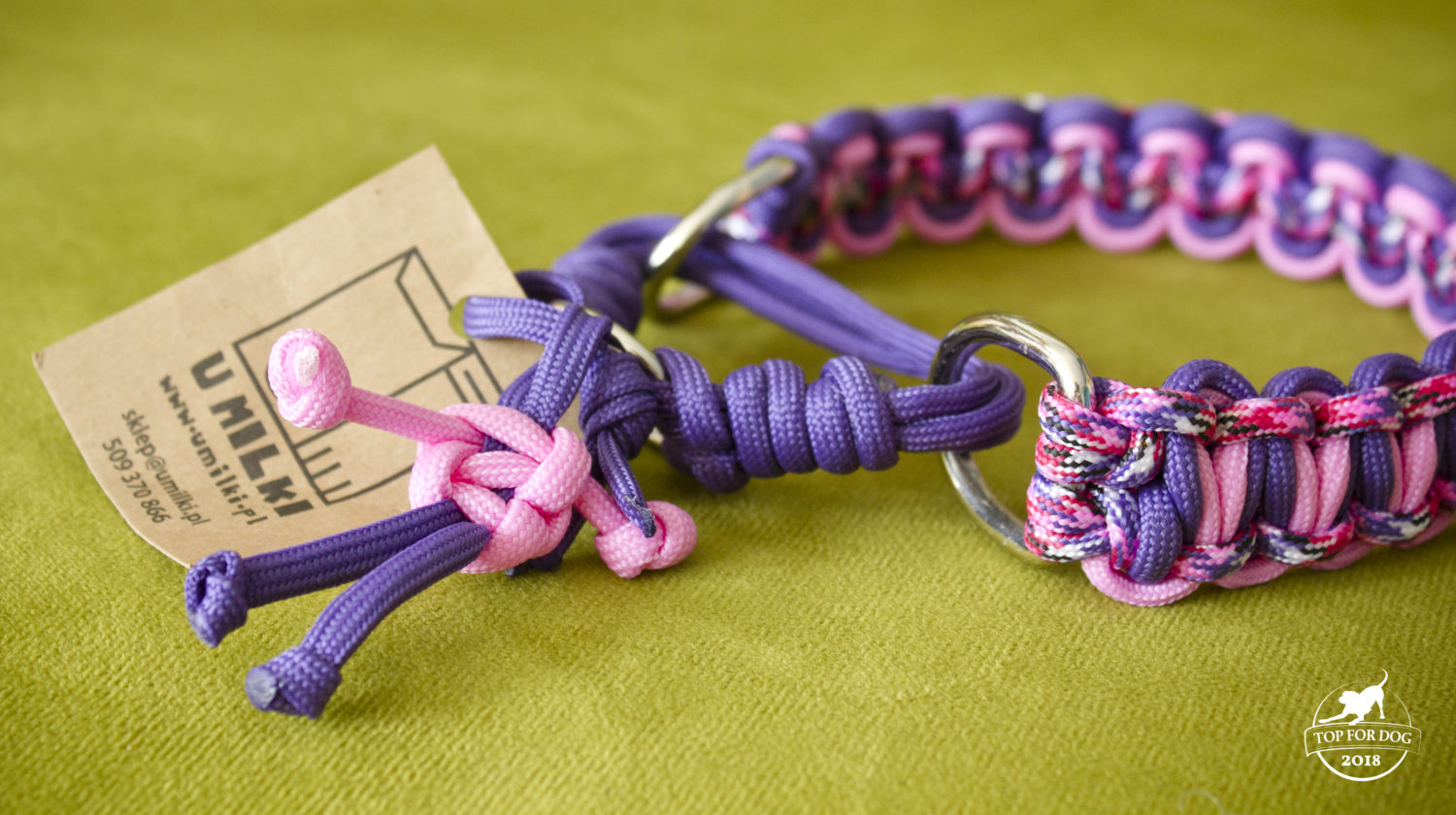 Ostatnio coraz modniejszy materiał paracord to to, z czego swoje cudeńka wyplata (mota i zaplata? 🙂 UMilki biorąca udział w plebiscycie Top For Dog . Zobaczcie tylko jaką oryginalną i prześliczną obrożę dostała do testów Bu!